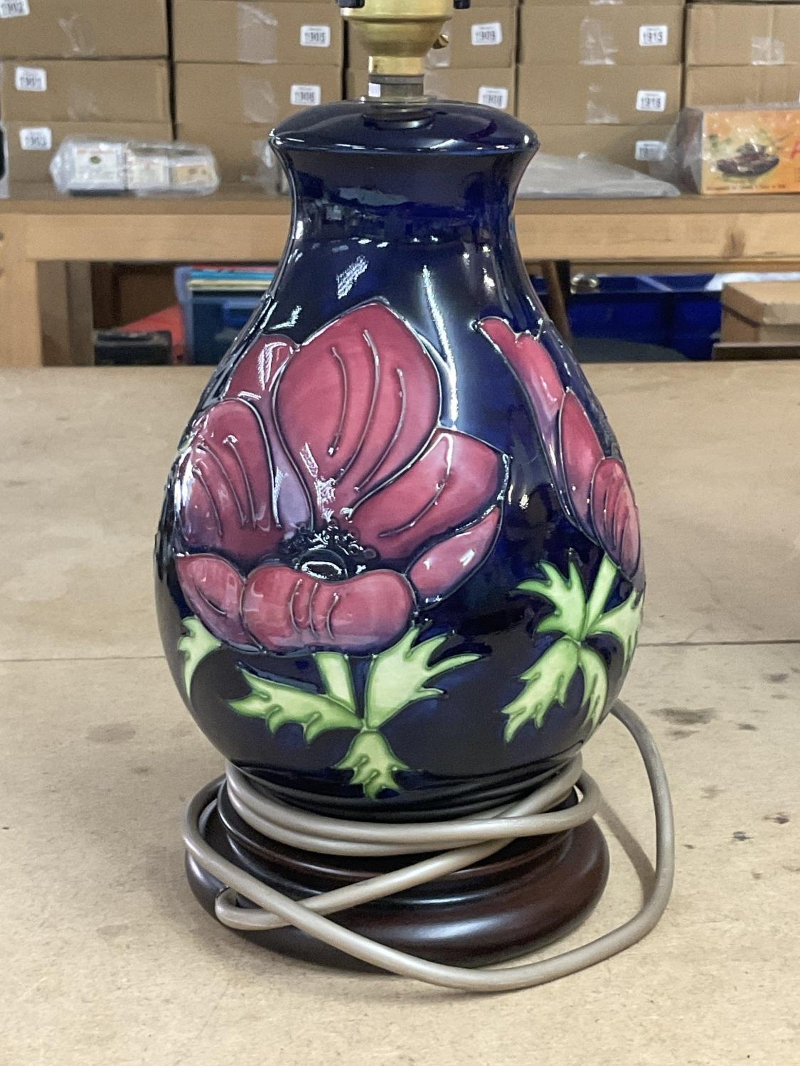 A Moorcroft Anemone lamp.