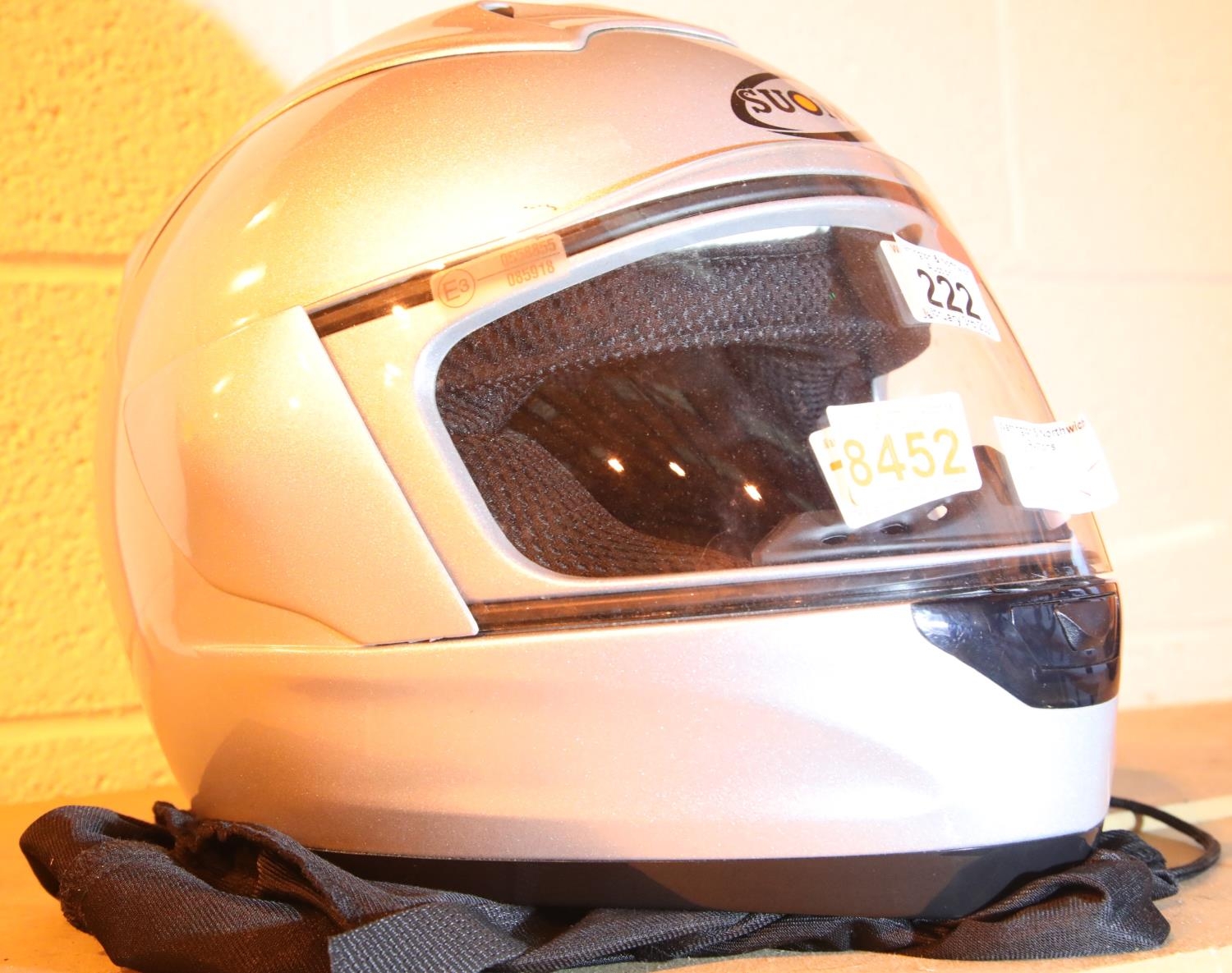 Suomy Trek motorcycle helmet and dustbag. Condition report: No sizes shown in or outside helmet P&P group 2 (£18 + VAT for the first lot and £3 + VAT for subsequent lots)