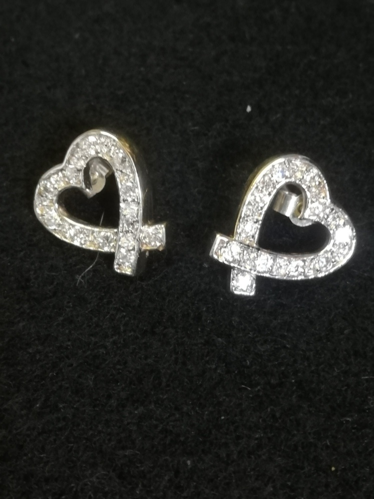9ct gold heart shaped white stone set earrings
