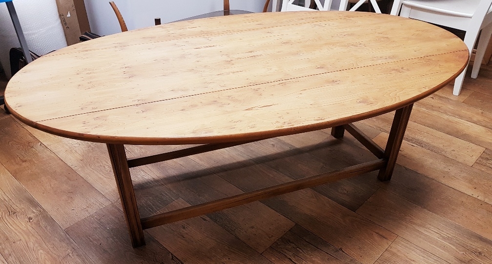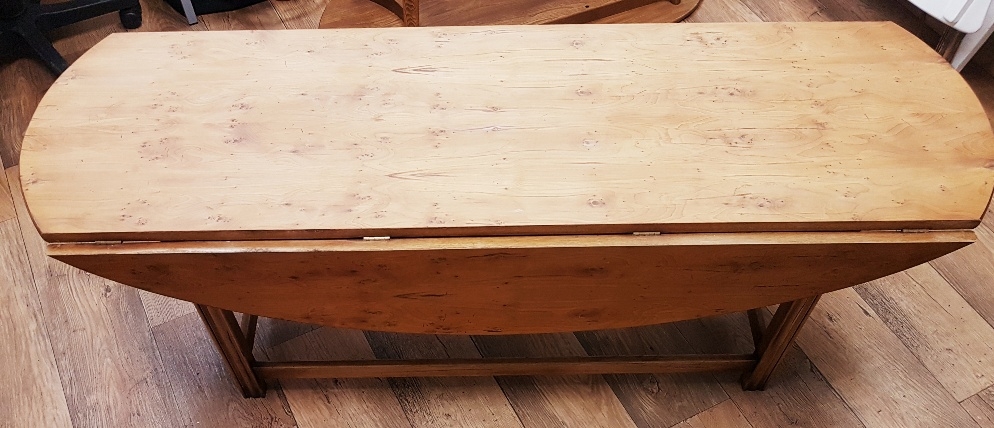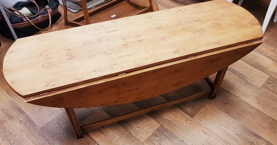N H Chapman & Co "Siesta" burr drop leaf table, 153cm x 92cm x 54cm high