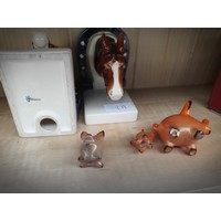 2 light metal fish imprint plaques along with 3 paper Mache fish