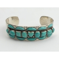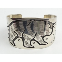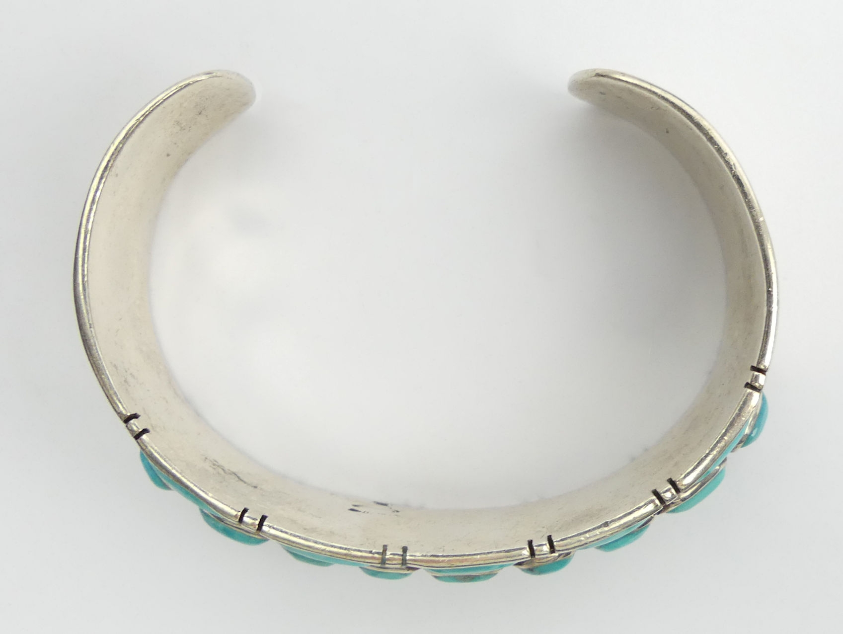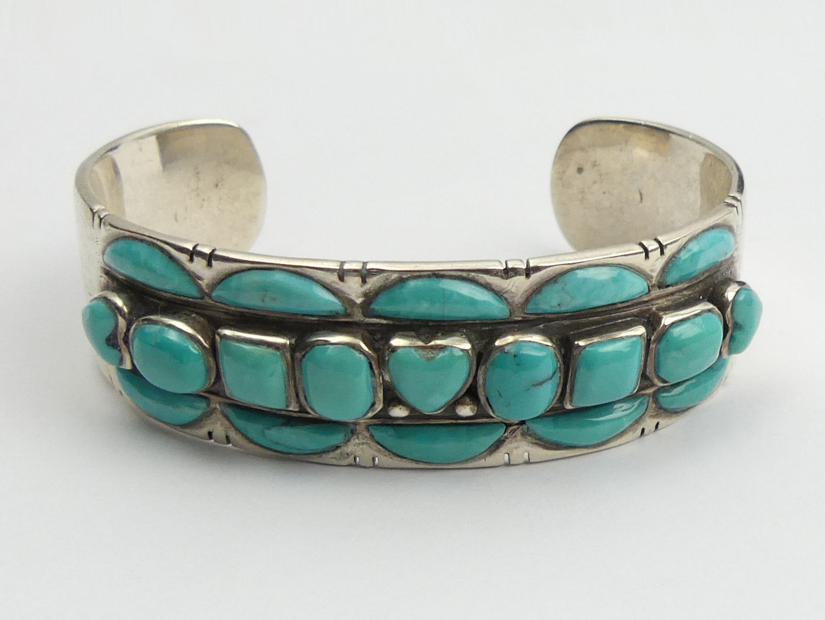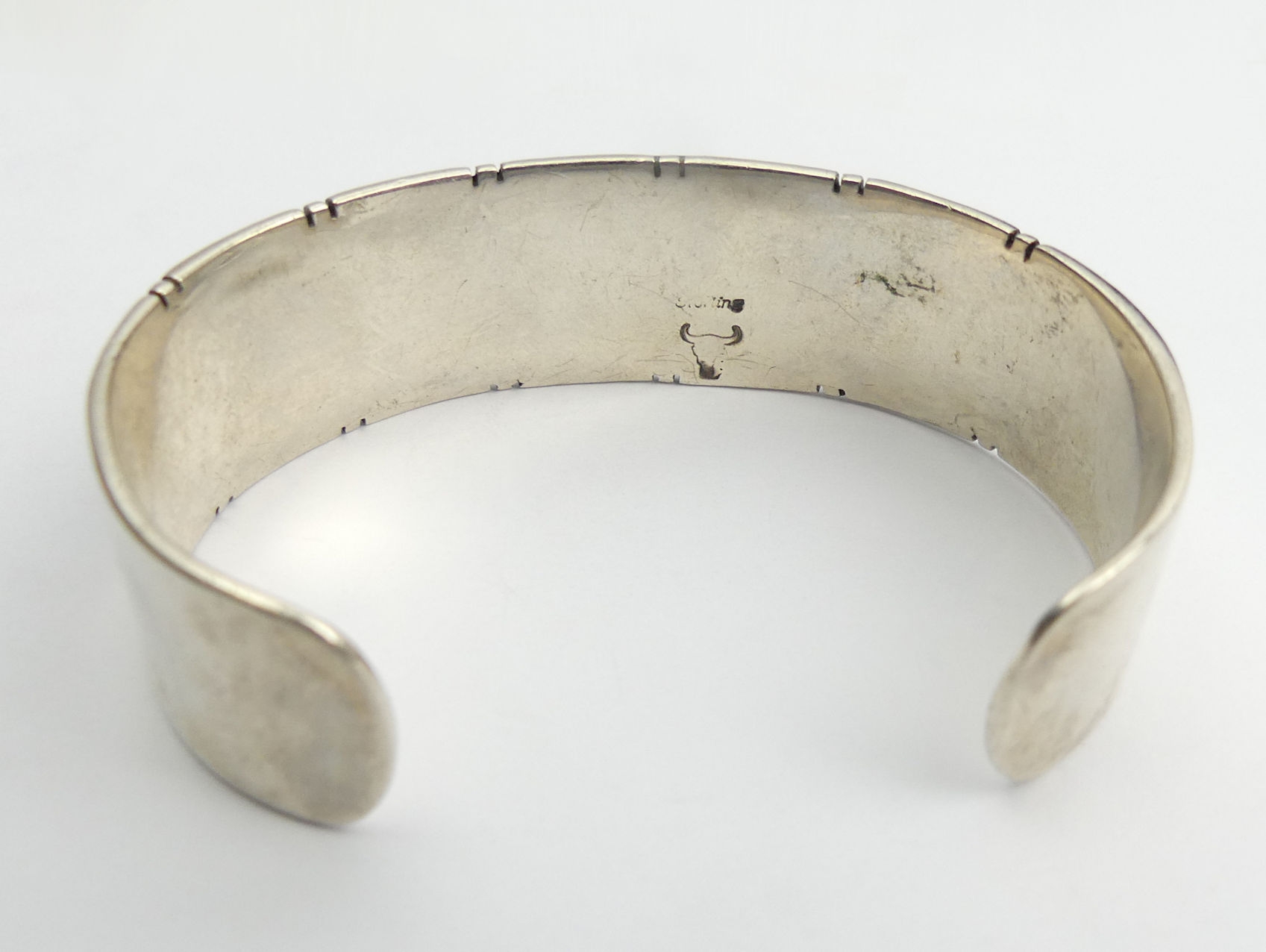 Sterling silver and turquoise Native American cuff bangle, Buffalo head mark, 53.9 grams, 20mm wide.