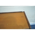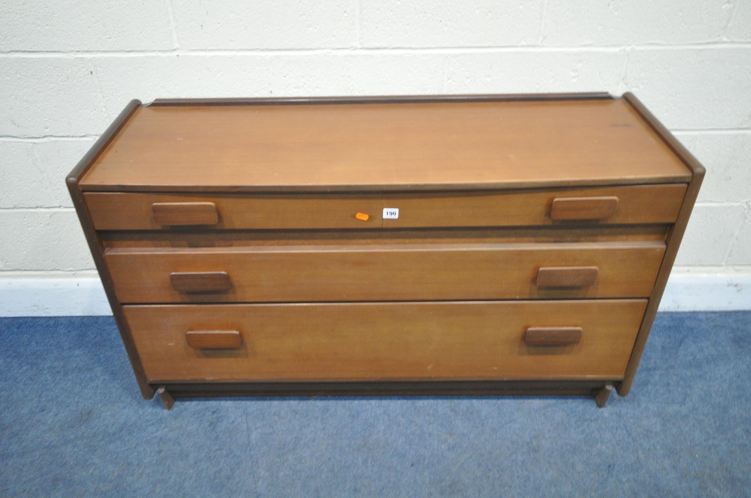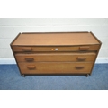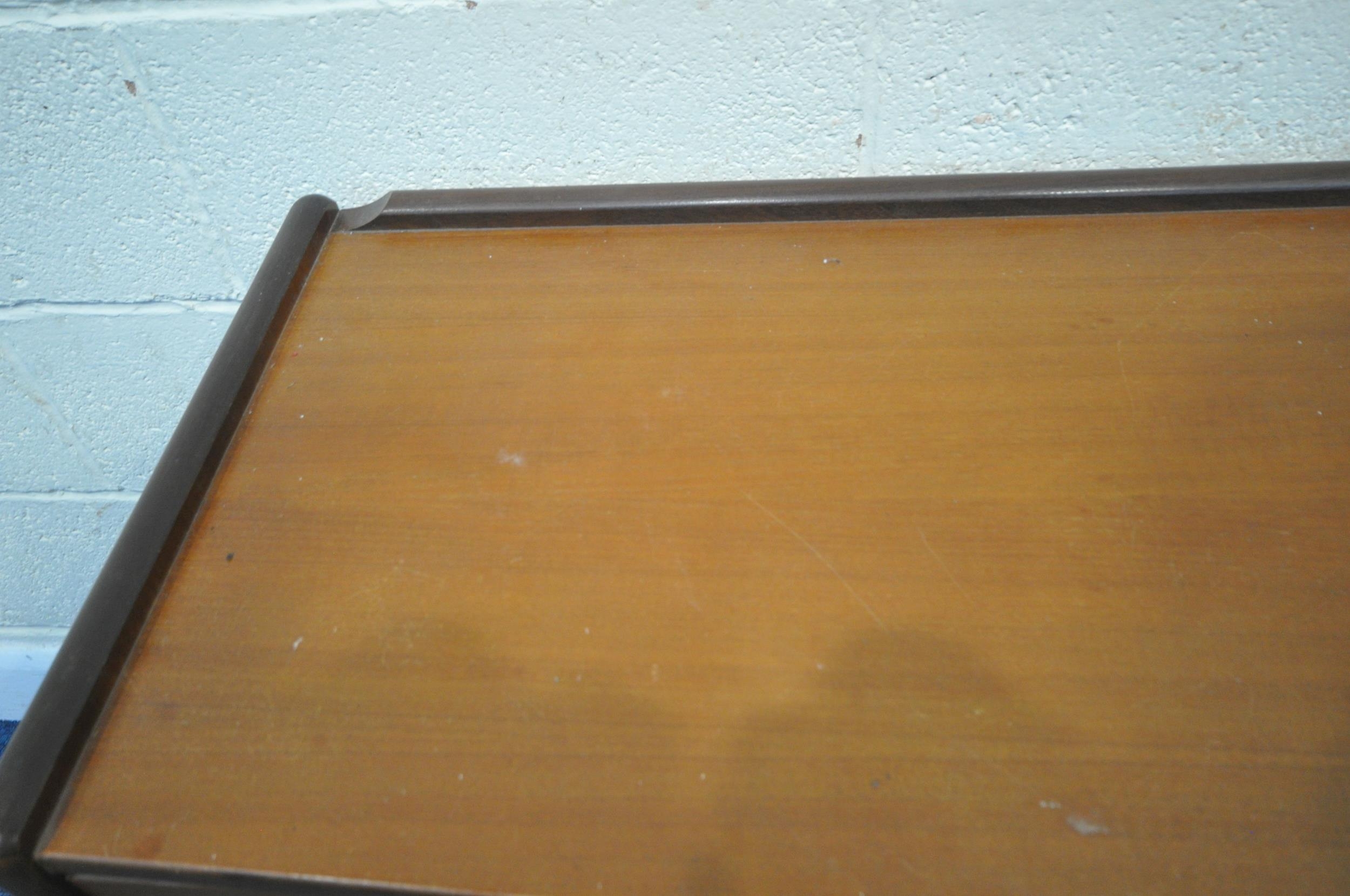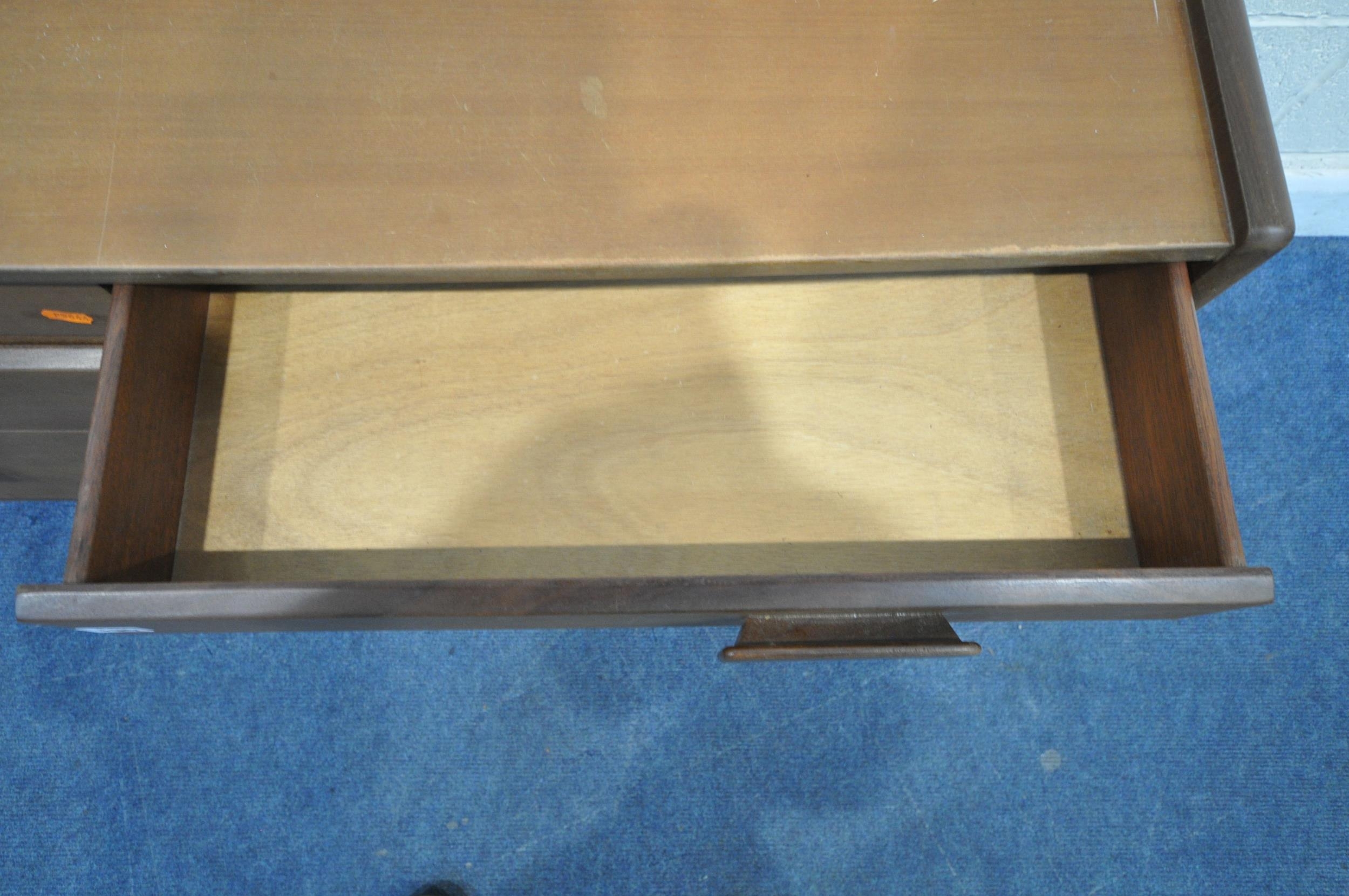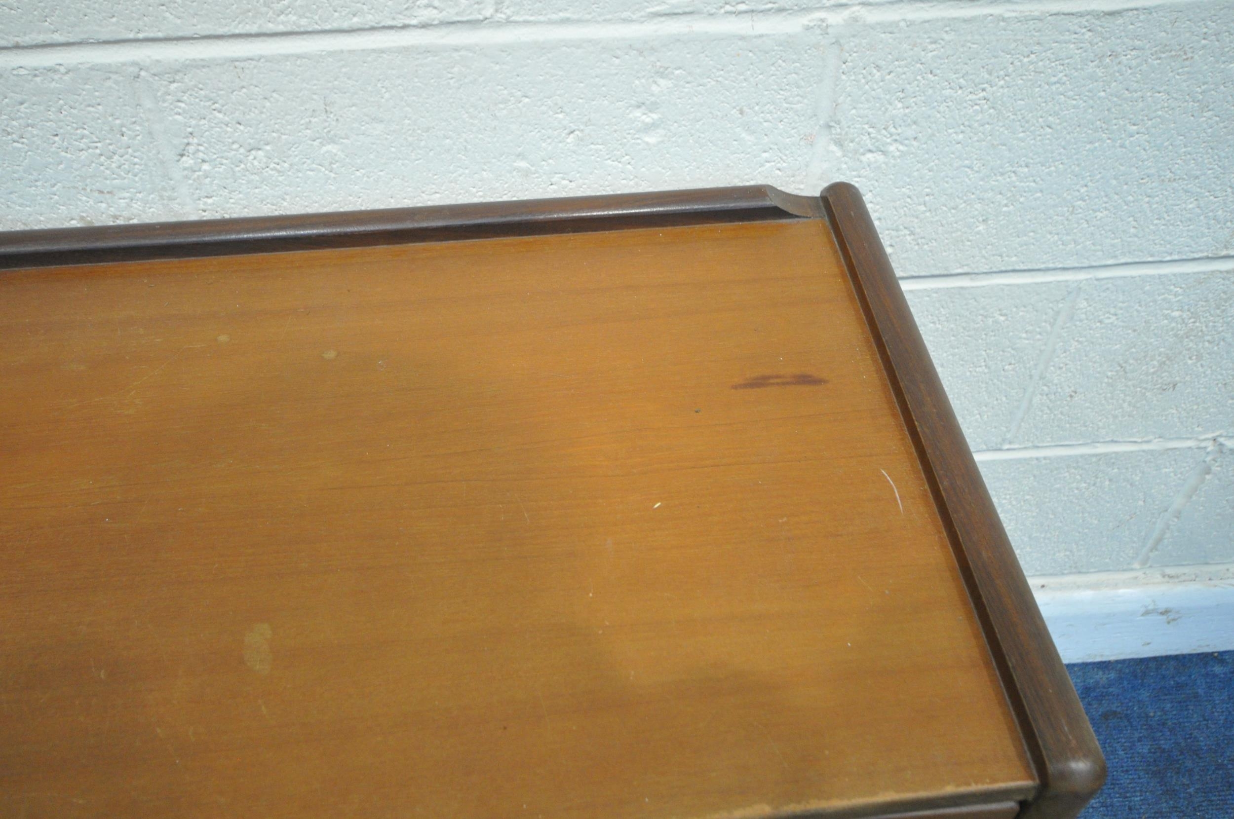 A MID-CENTURY TEAK SIDEBOARD, fitted with two short over two long drawers, length 127cm x depth 43cm x height 74cm, condition report: marks, scuffs, minor scratches, other signs of usage