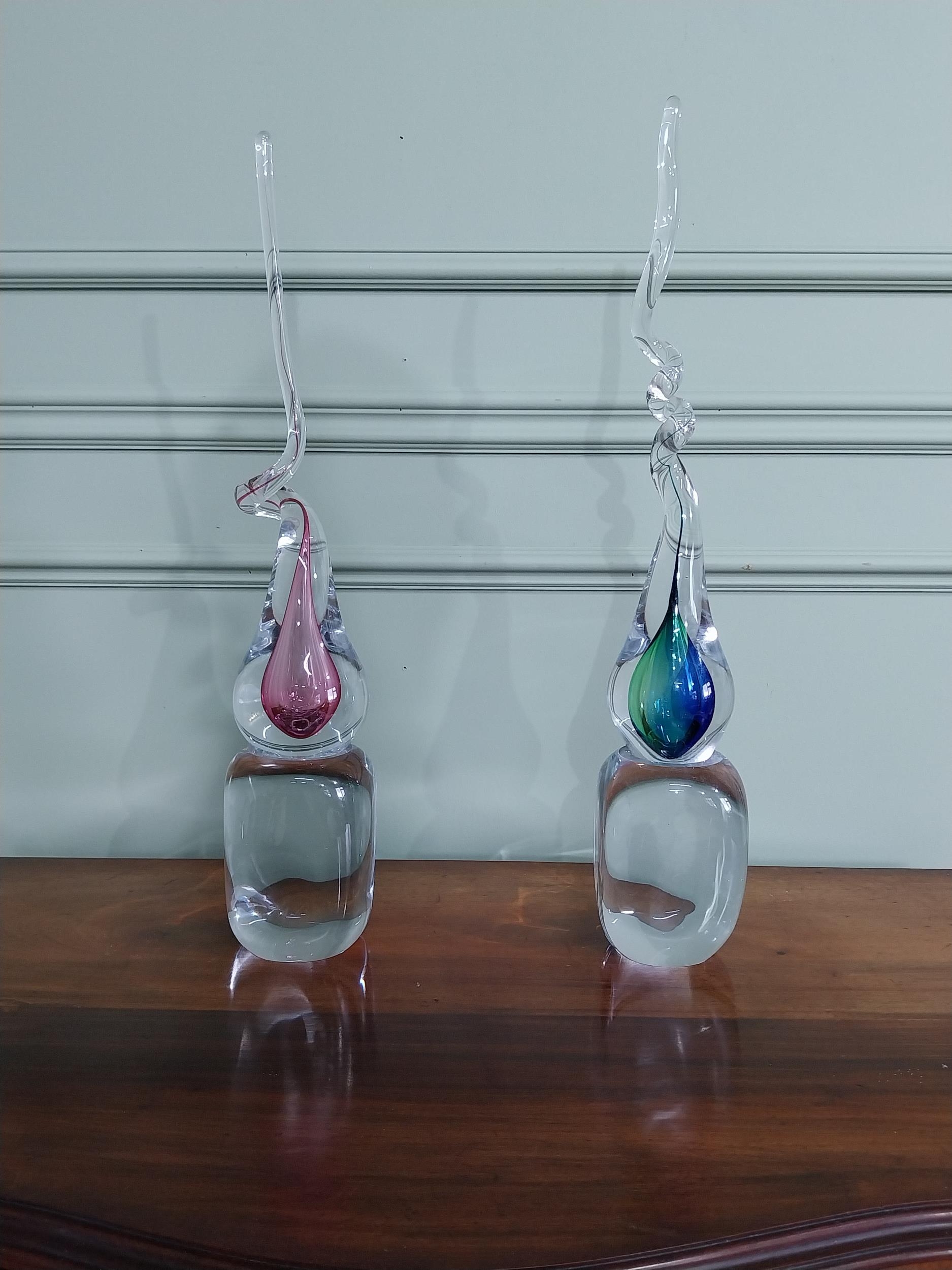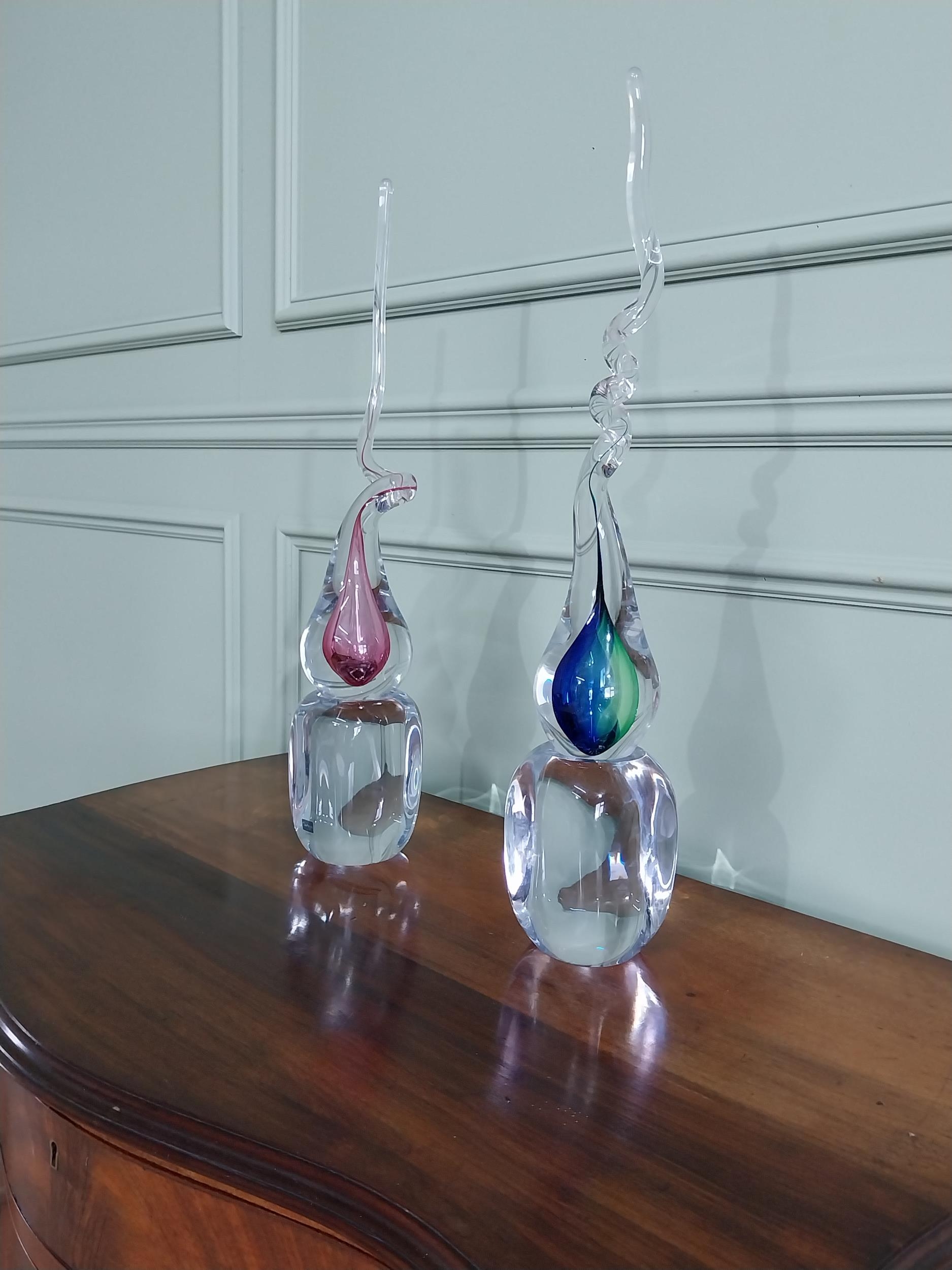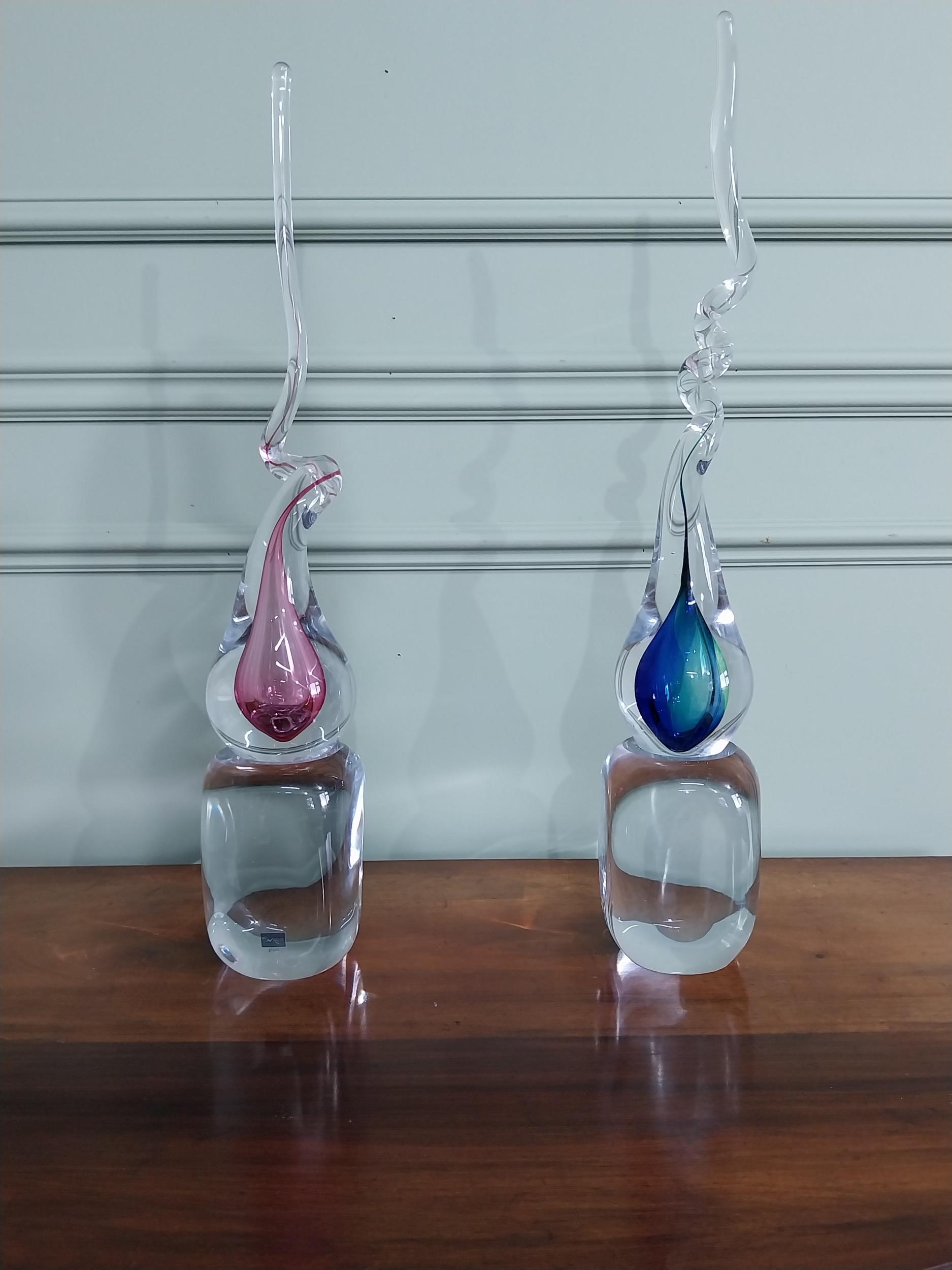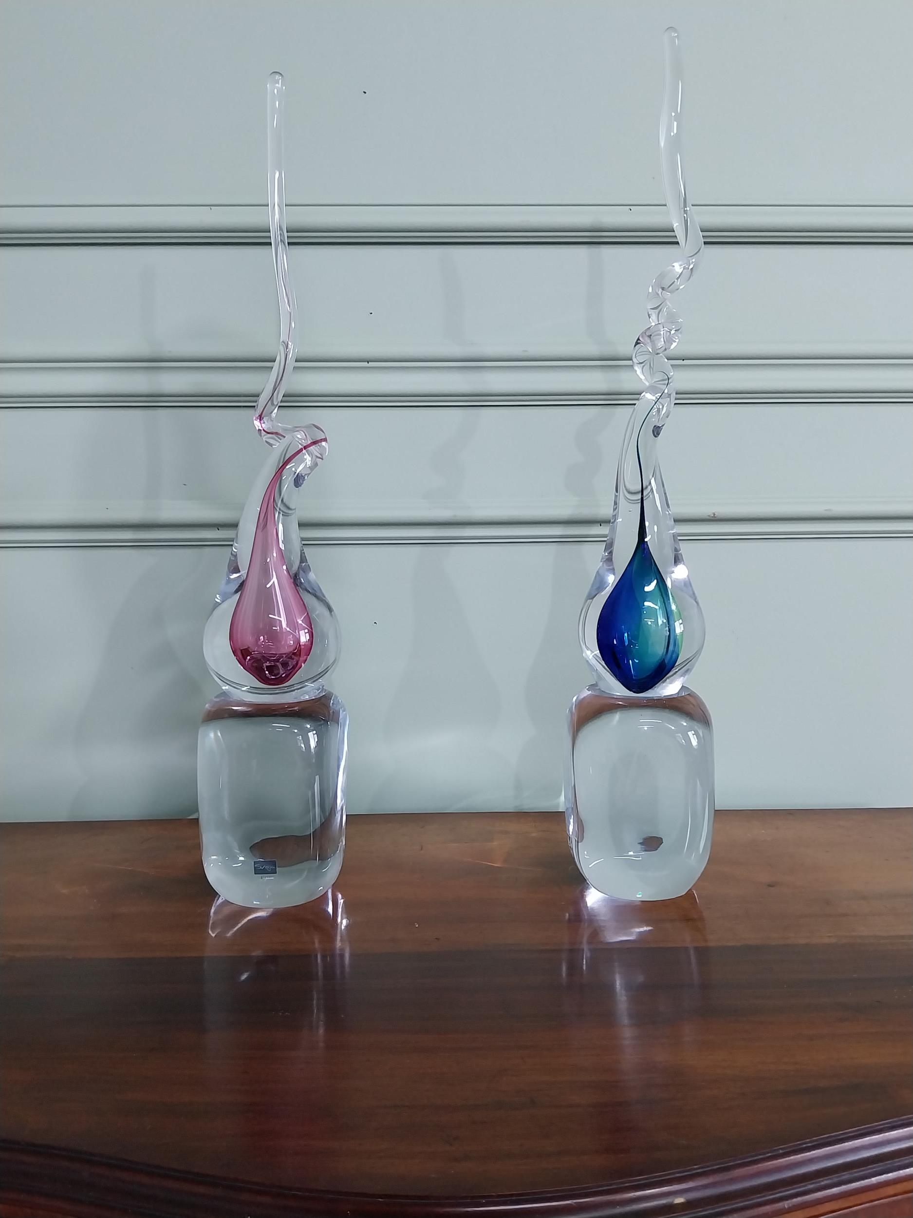 Two Svaja glass sculptures {56 cm H x 10 cm W x 10 cm D}.