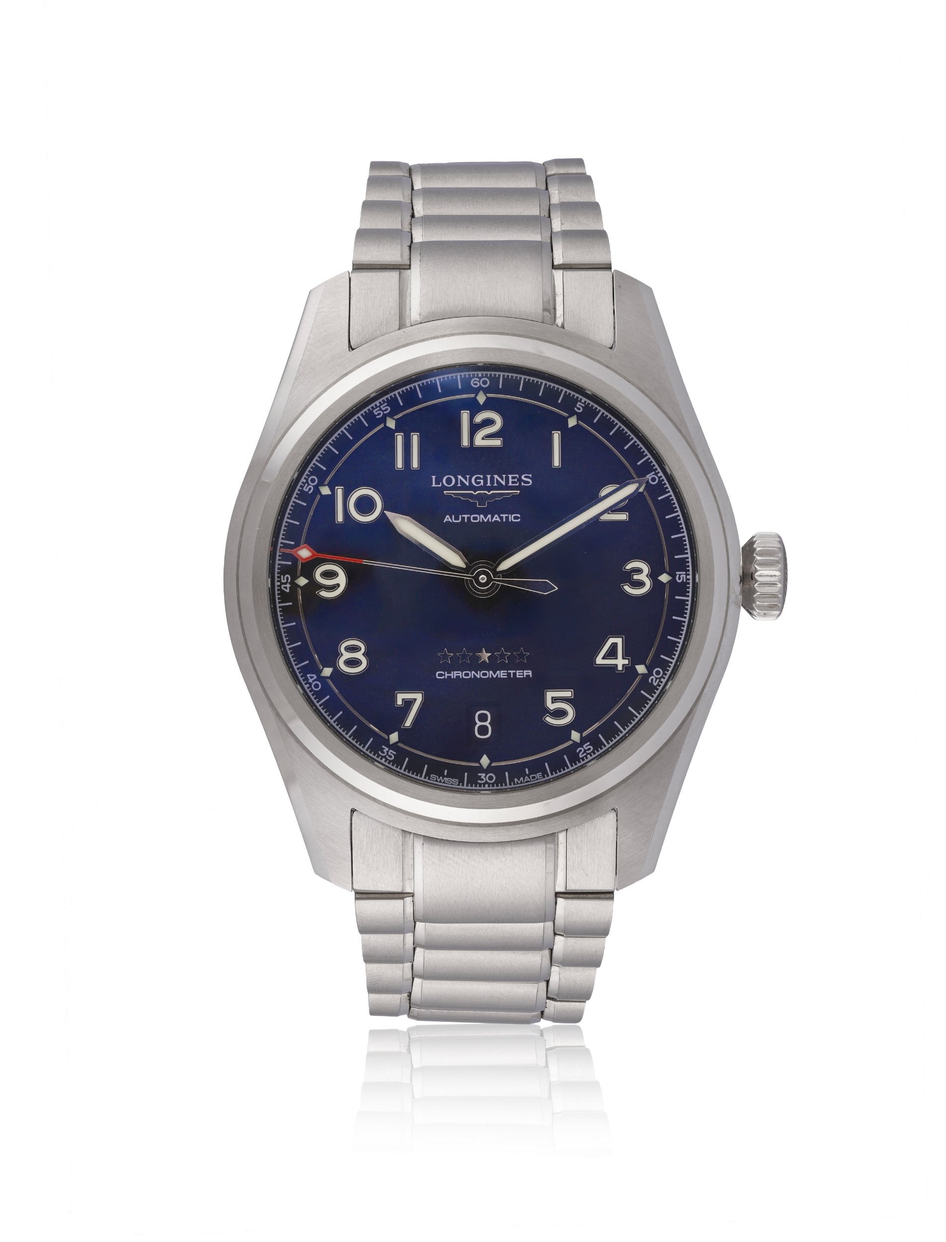 LONGINES SPIRIT CHRONOMETER, REF L3.410.4.53.6 STAINLESS STEEL WRISTWATCH A modern stainless steel wristwatch featuring a central seconds and chronometer-certified movement. Year: 2025 Dial: Black dial with applied Arabic numerals, minute track, central seconds hand Movement: Automatic, chronometer-certified calibre (Longines L888) Case: Stainless steel case with screw-down caseback Size: 37 mm approx. Gross Weight: 110 g approx. Bracelet/Strap: Original stainless steel bracelet with folding clasp Accessories: Full set with box and papers