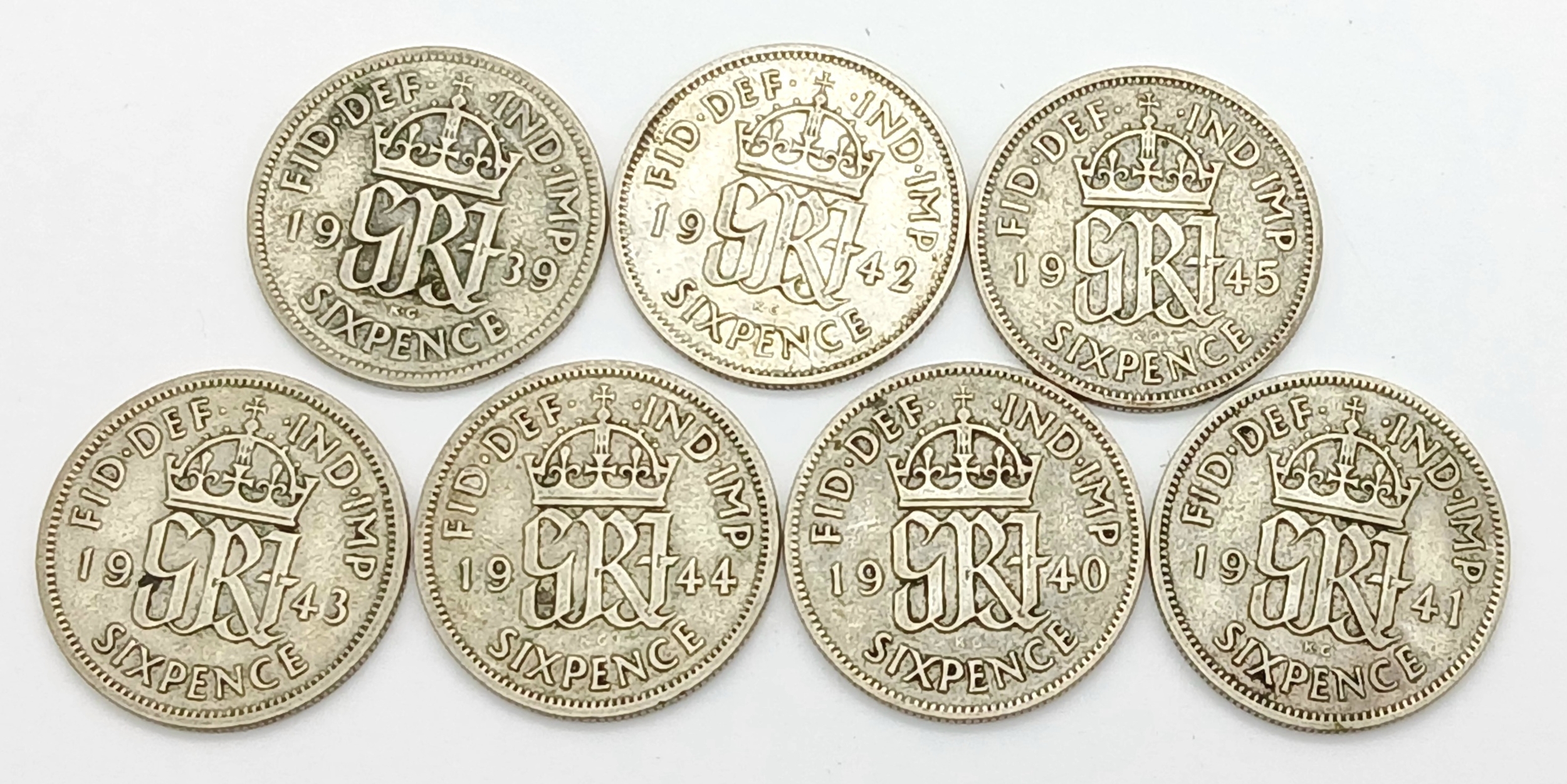 A Consecutive Run Set of Very Fine Condition WW2 Dates (Pre-1947 Silver) Silver Six Pences coins- Dates 1939-1945 Inclusive.