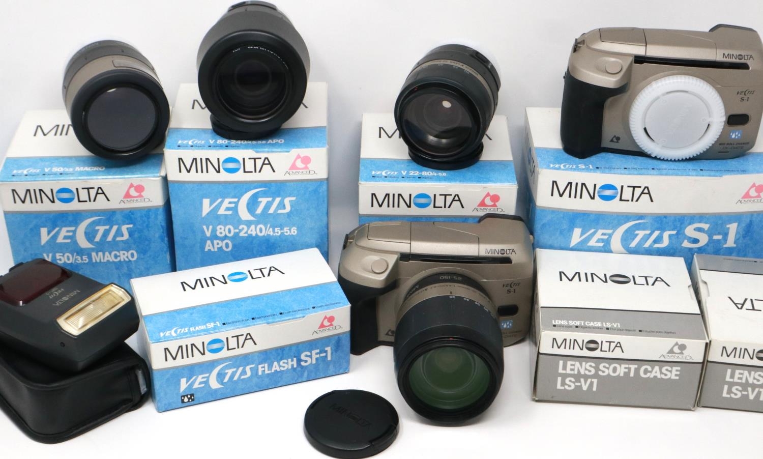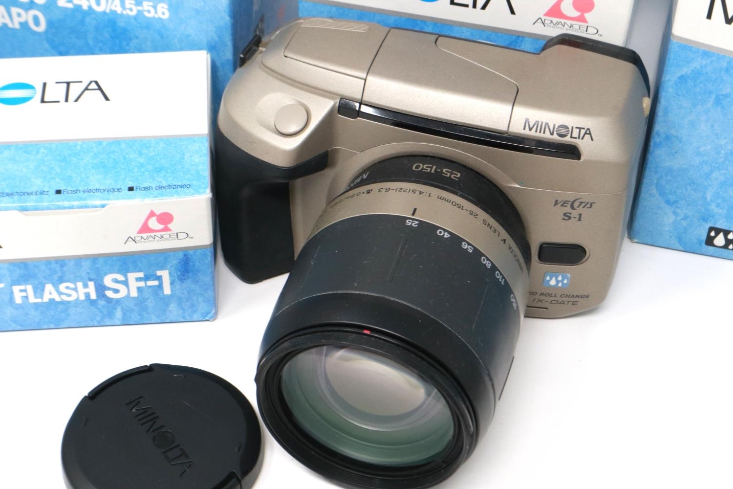 An extensive Minolta Vectis photographic outfit. P&P Group 2 (£18+VAT for the first lot and £3+VAT for subsequent lots)