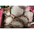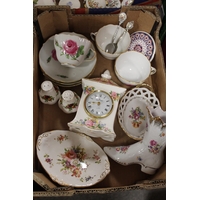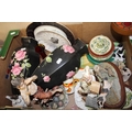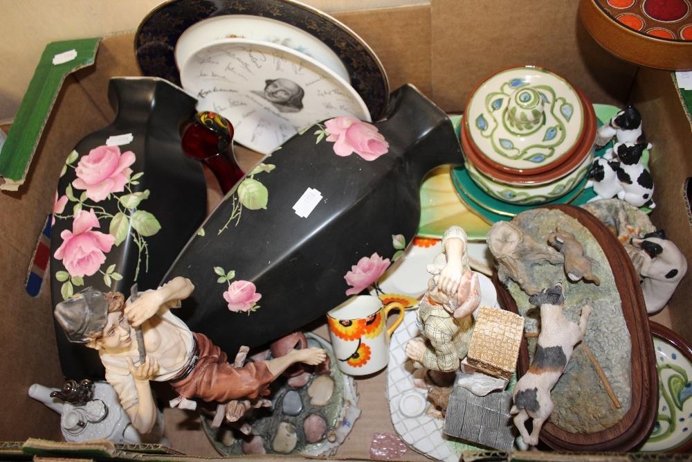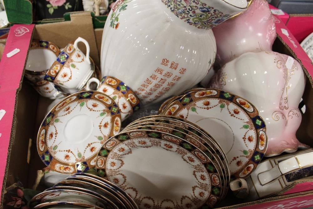 TWO TRAYS OF ASSORTED CHINA AND CERAMICS TO INCLUDE ROYAL ALBION CHINA, MODERN ORIENTAL VASE AND FIGURES