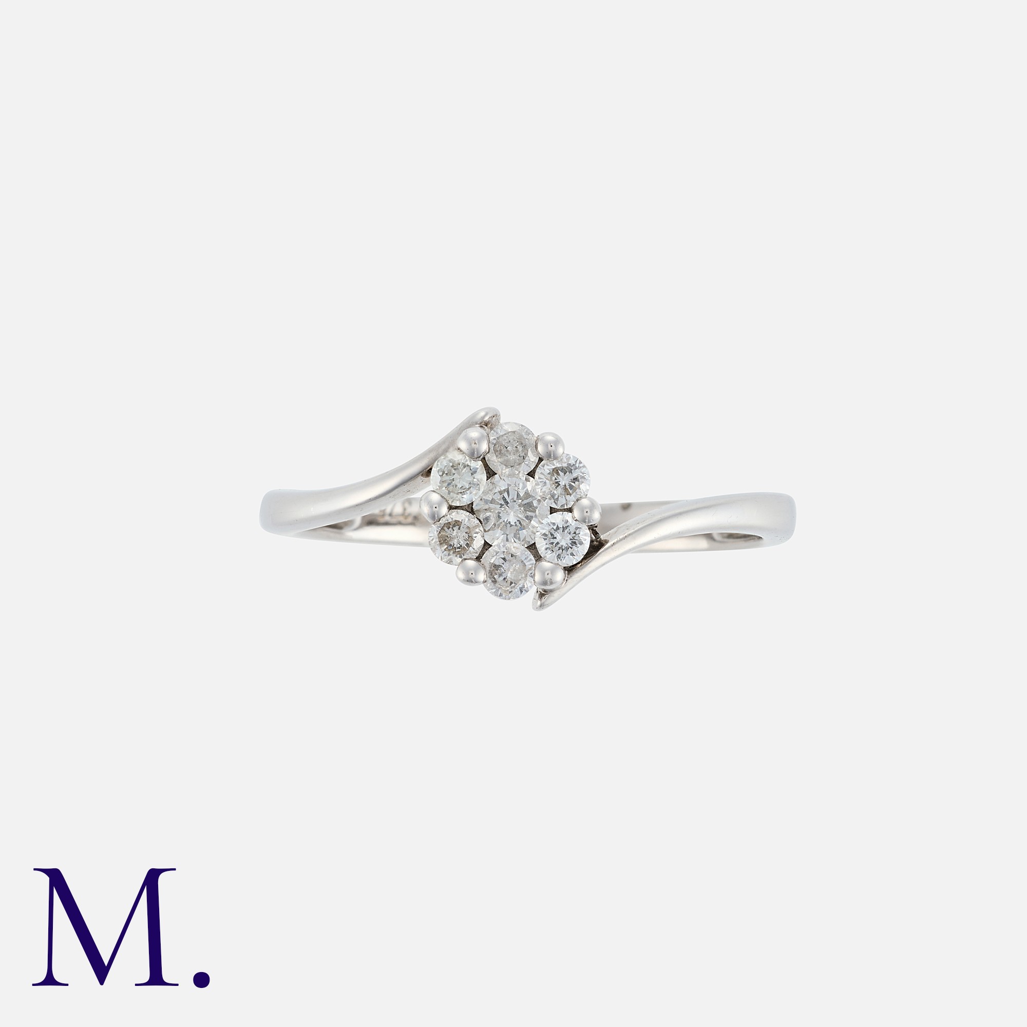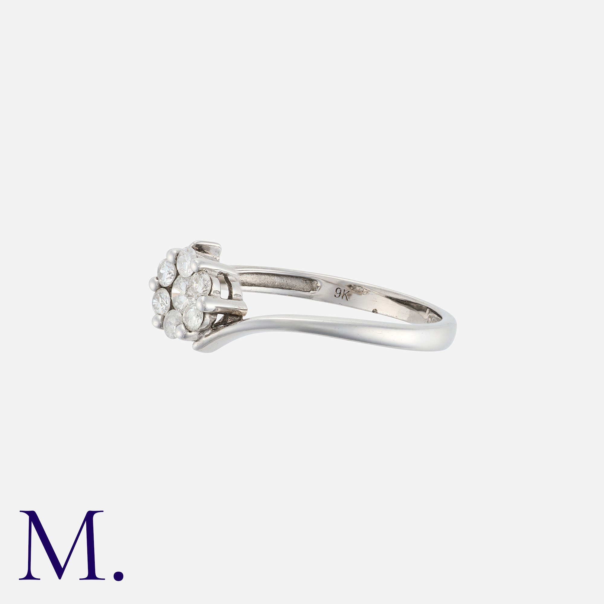 NO RESERVE. A Diamond Cluster ring in 9k white gold, the central cluster of seven round cut diamonds to a twisted band. Stamped 375 and 9k for 9ct Gold. Total diamond weight approximately 0.25ct.