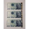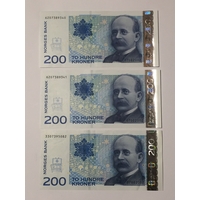 3 X Norway Sequential Norges Bank 200 Kroner Notes 2013 In Uncirculated Condition (3)