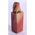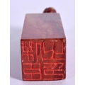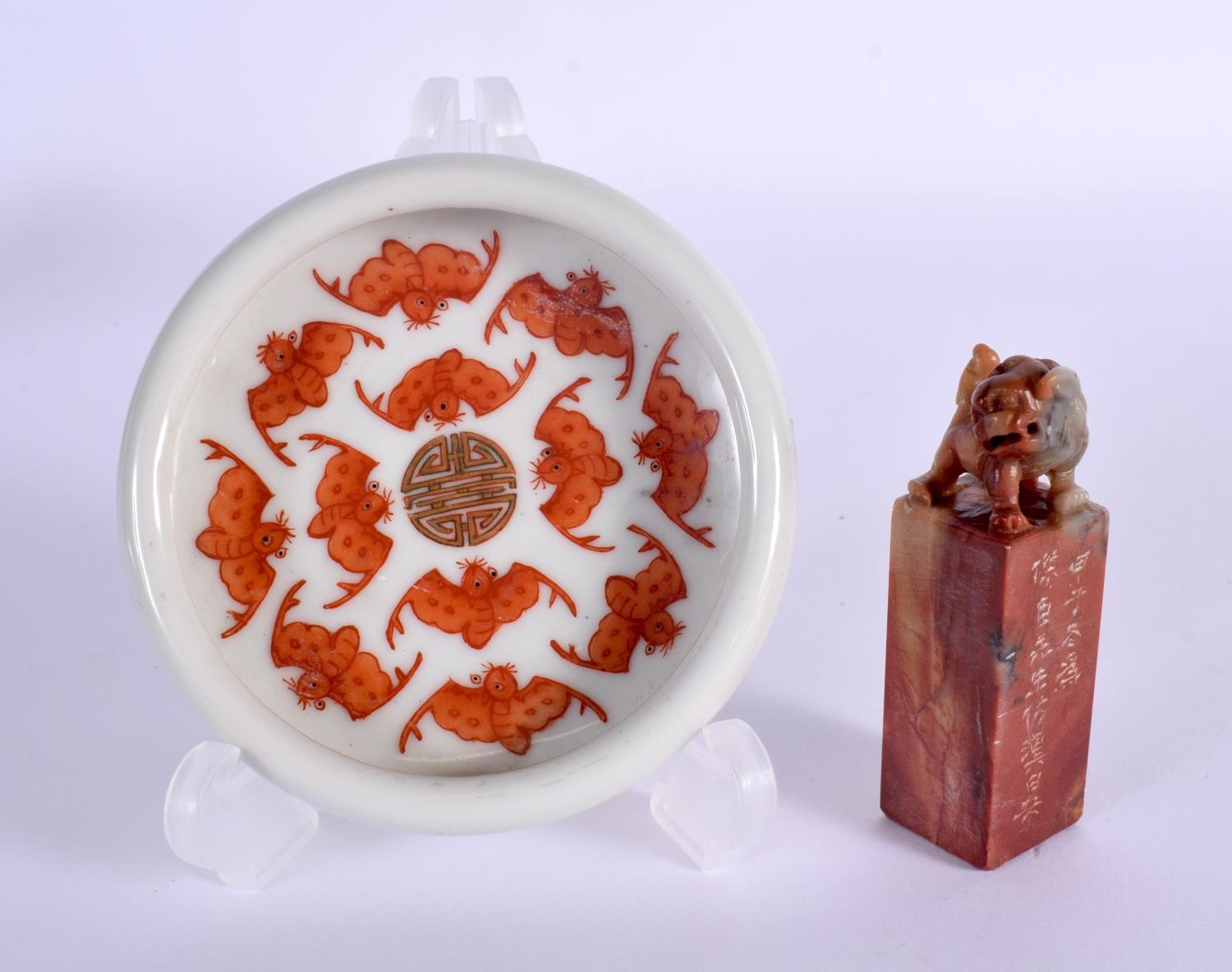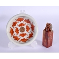 AN EARLY 20TH CENTURY CHINESE IRON RED GLAZED BRUSH WASHER Late Qing/Republic together with a soapstone seal. Largest 8.5 cm diameter. (2)