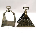 Antique pair of Continental brass stirrups - 18cm high