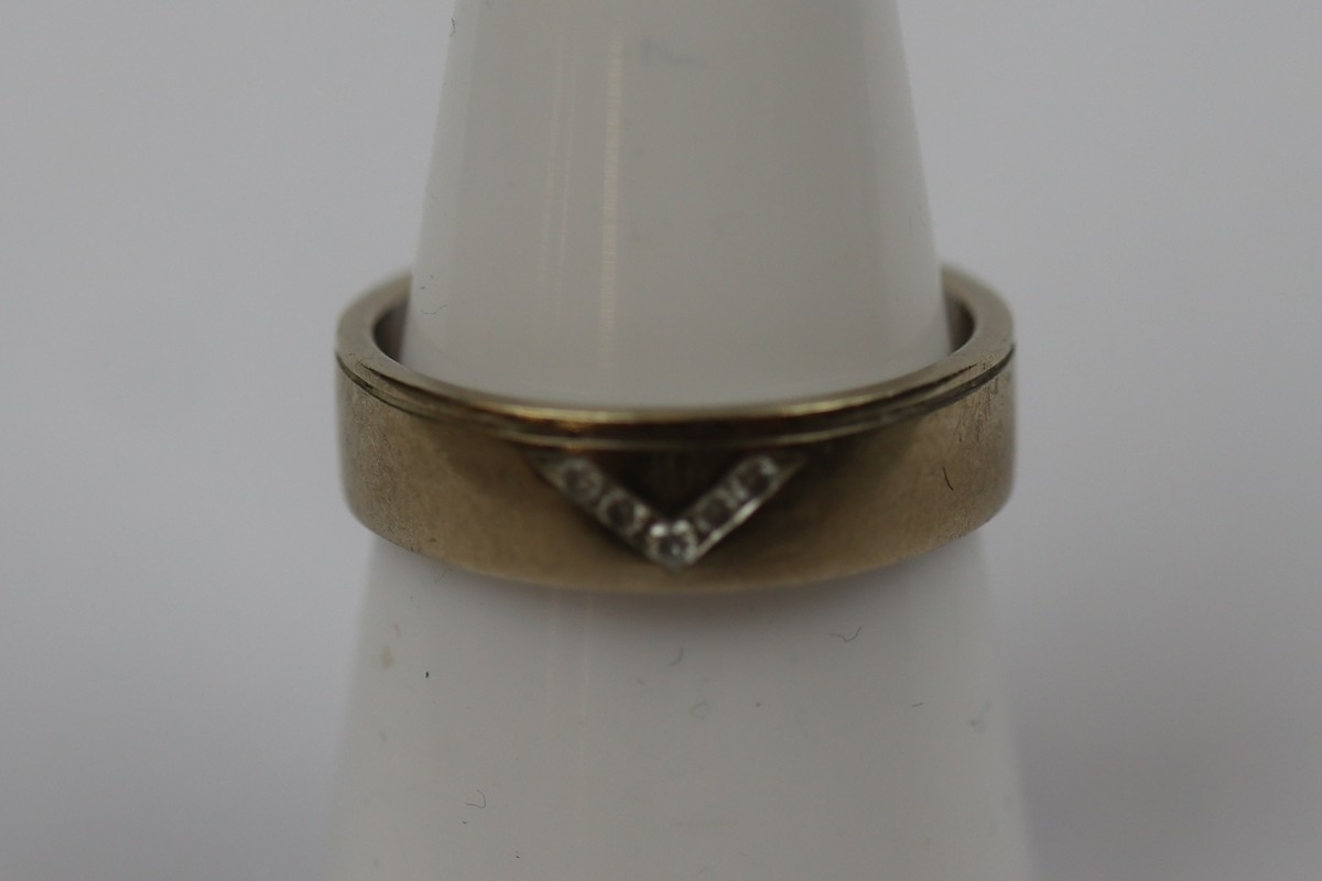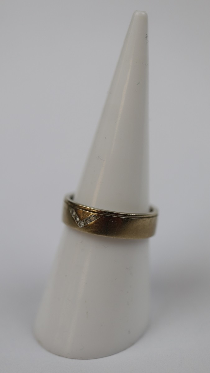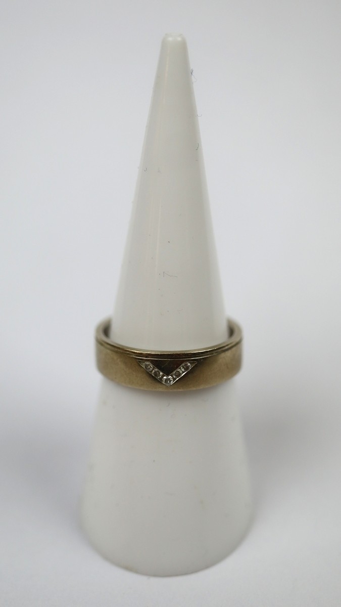 9ct gold diamond set ring - Size M - Approx weight 4g