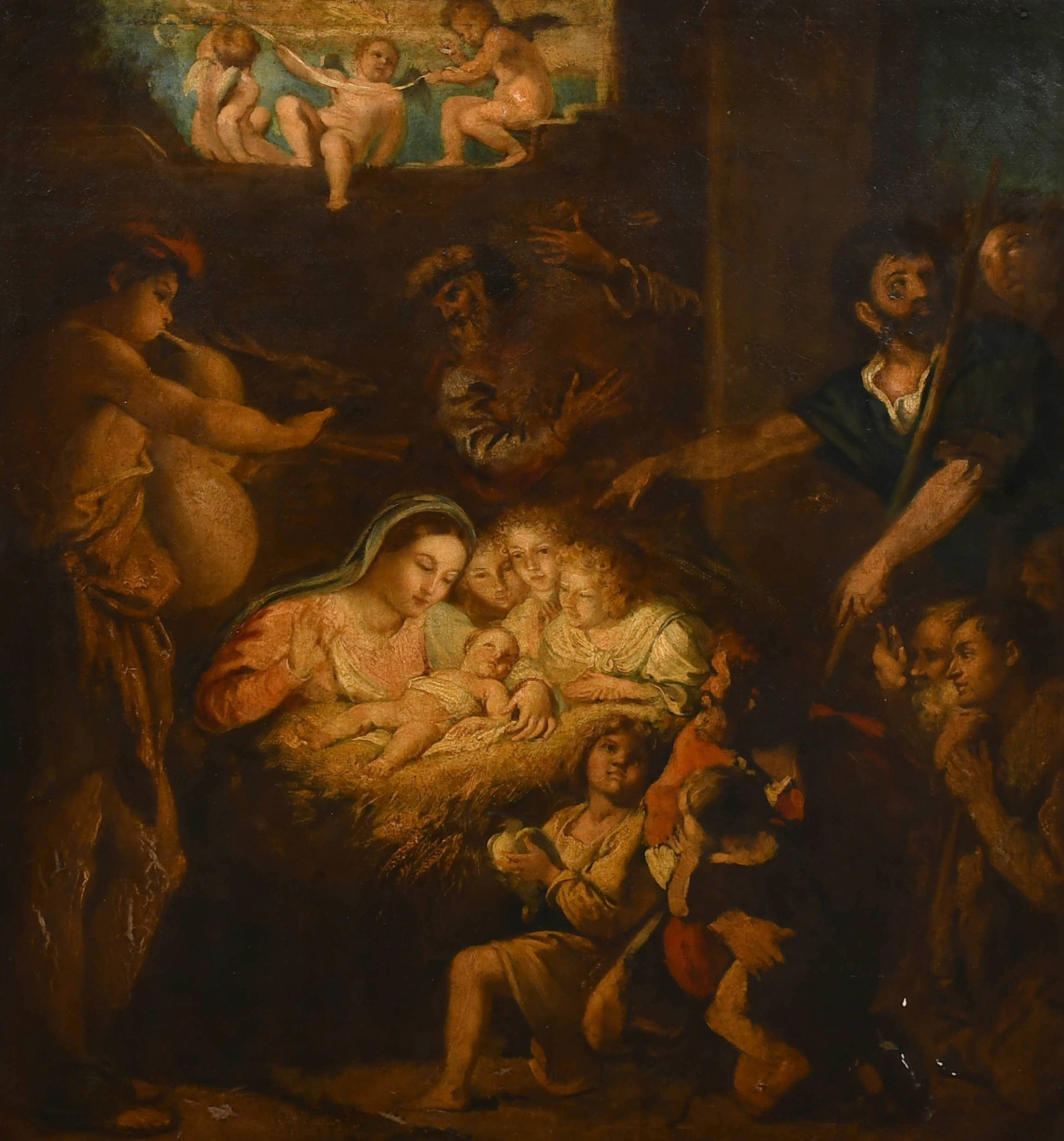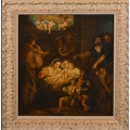 Follower of Annibale Carracci (1560-1609) Italian. 'The Adoration of the Shepherds', Oil on canvas, 26" x 23" (66 x 58.4cm)
