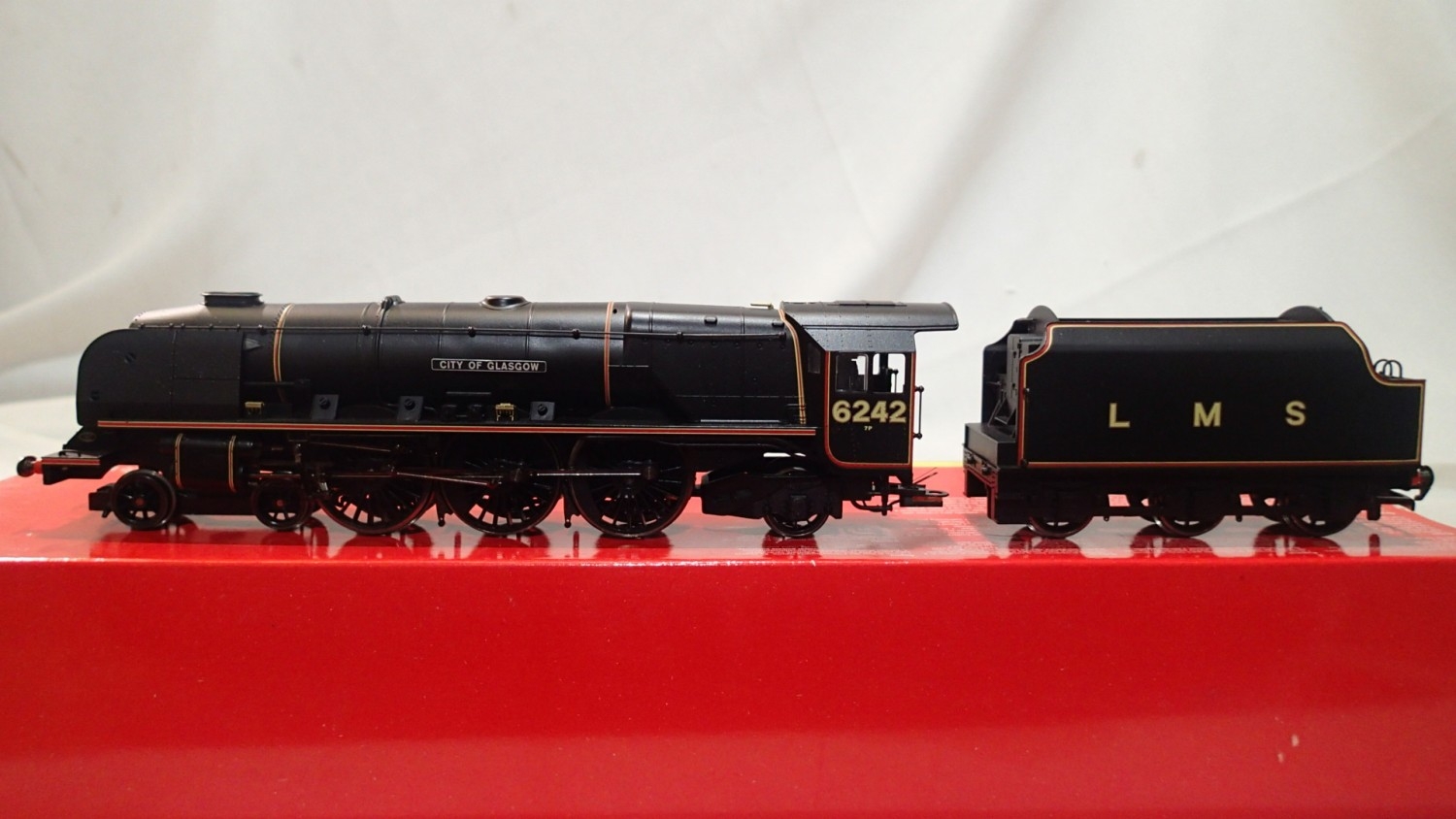Hornby R2311, Duchess class, 'City of Glasgow', 6242, LMS Black, 1 front step detached (present) boxed. UK P&P Group 1 (£18+VAT for the first lot and £2+VAT for subsequent lots)