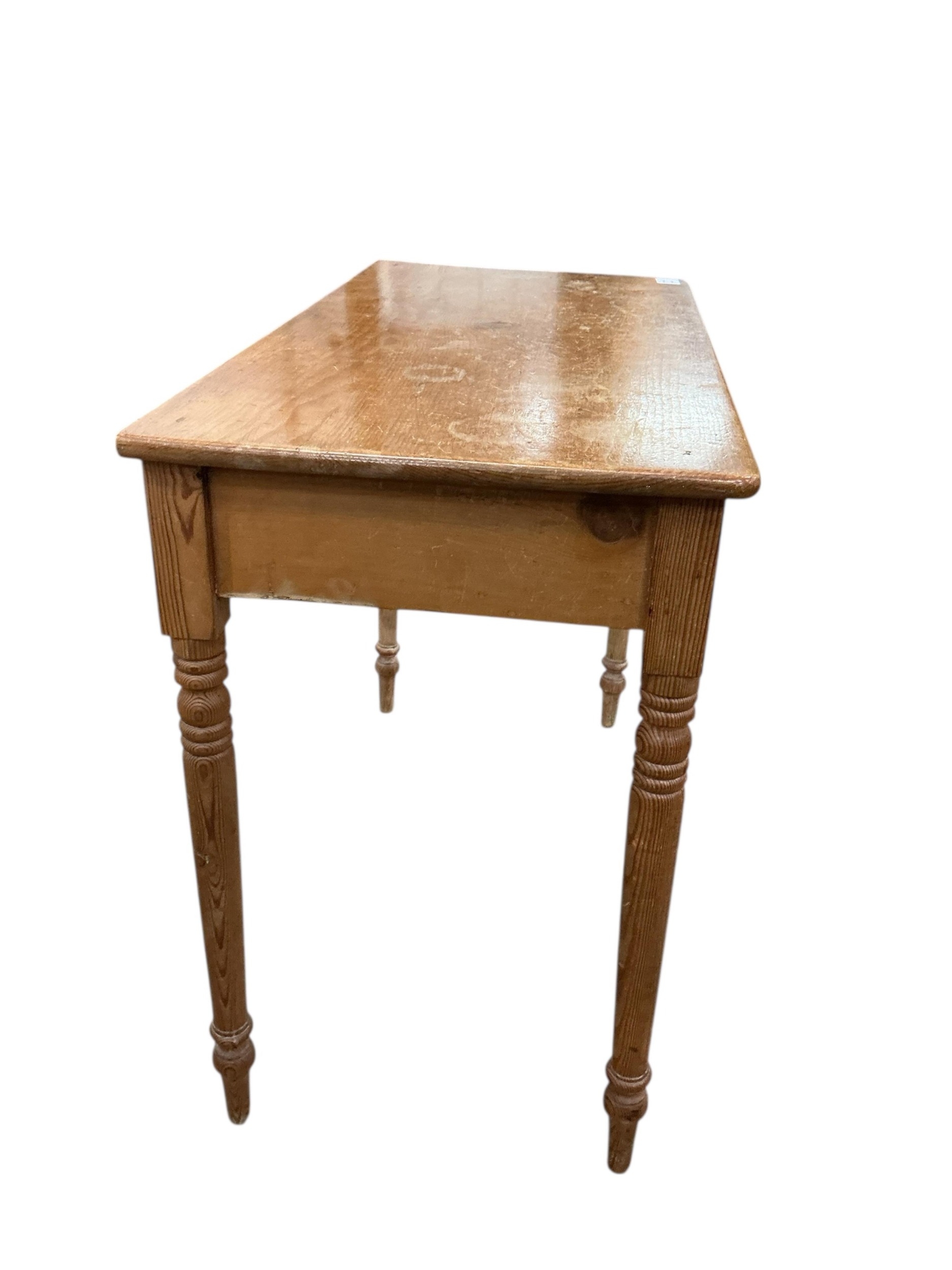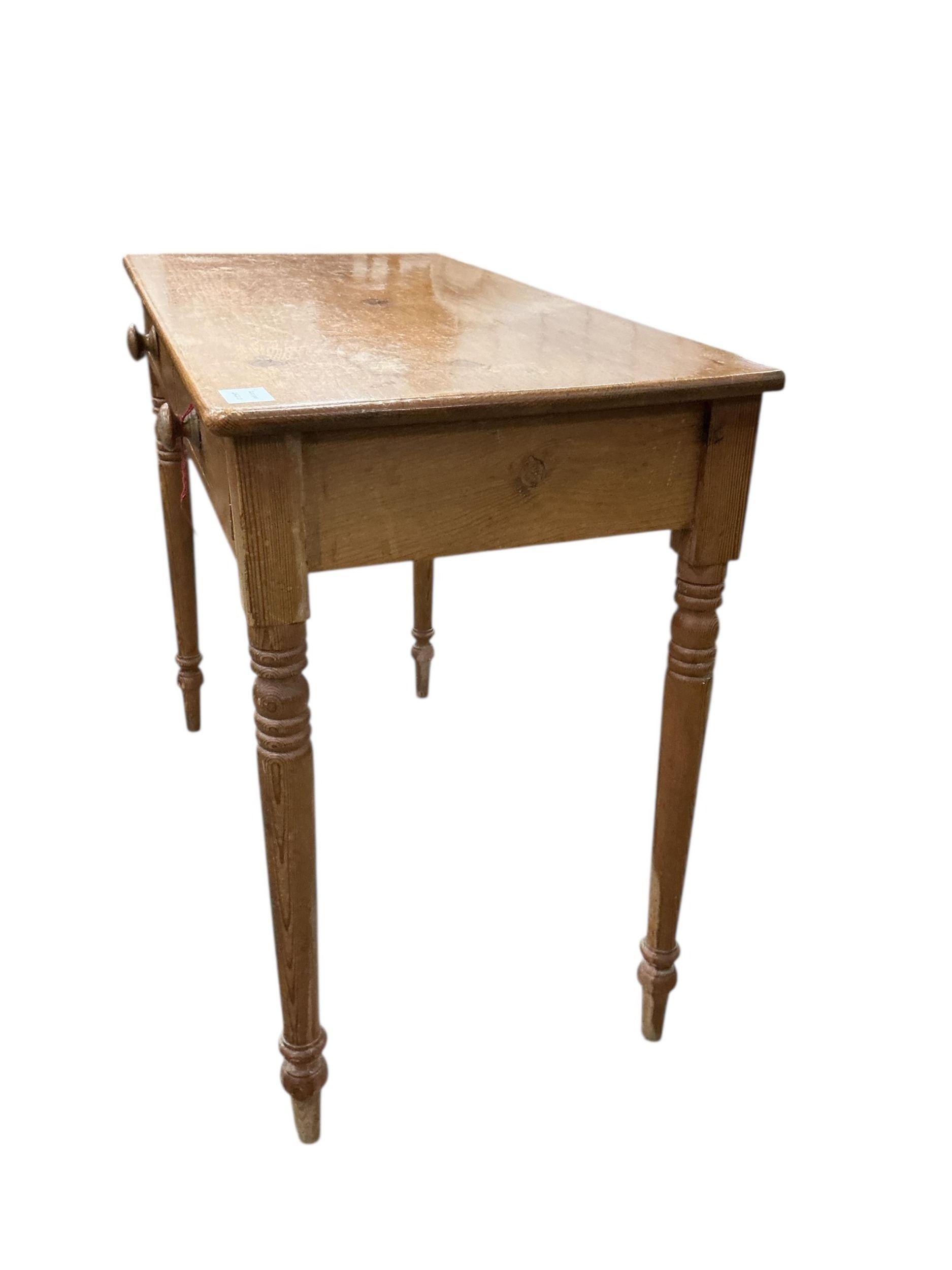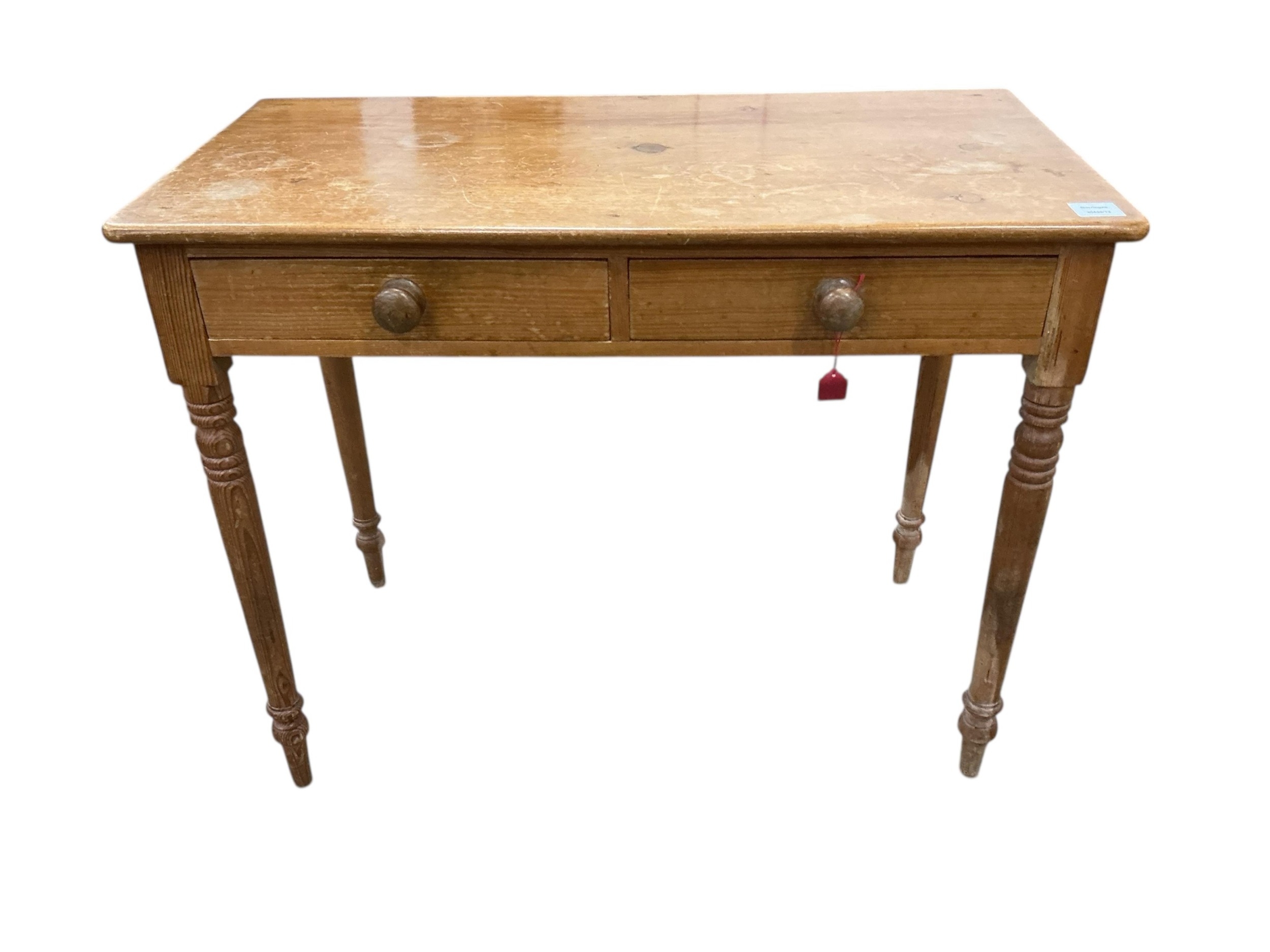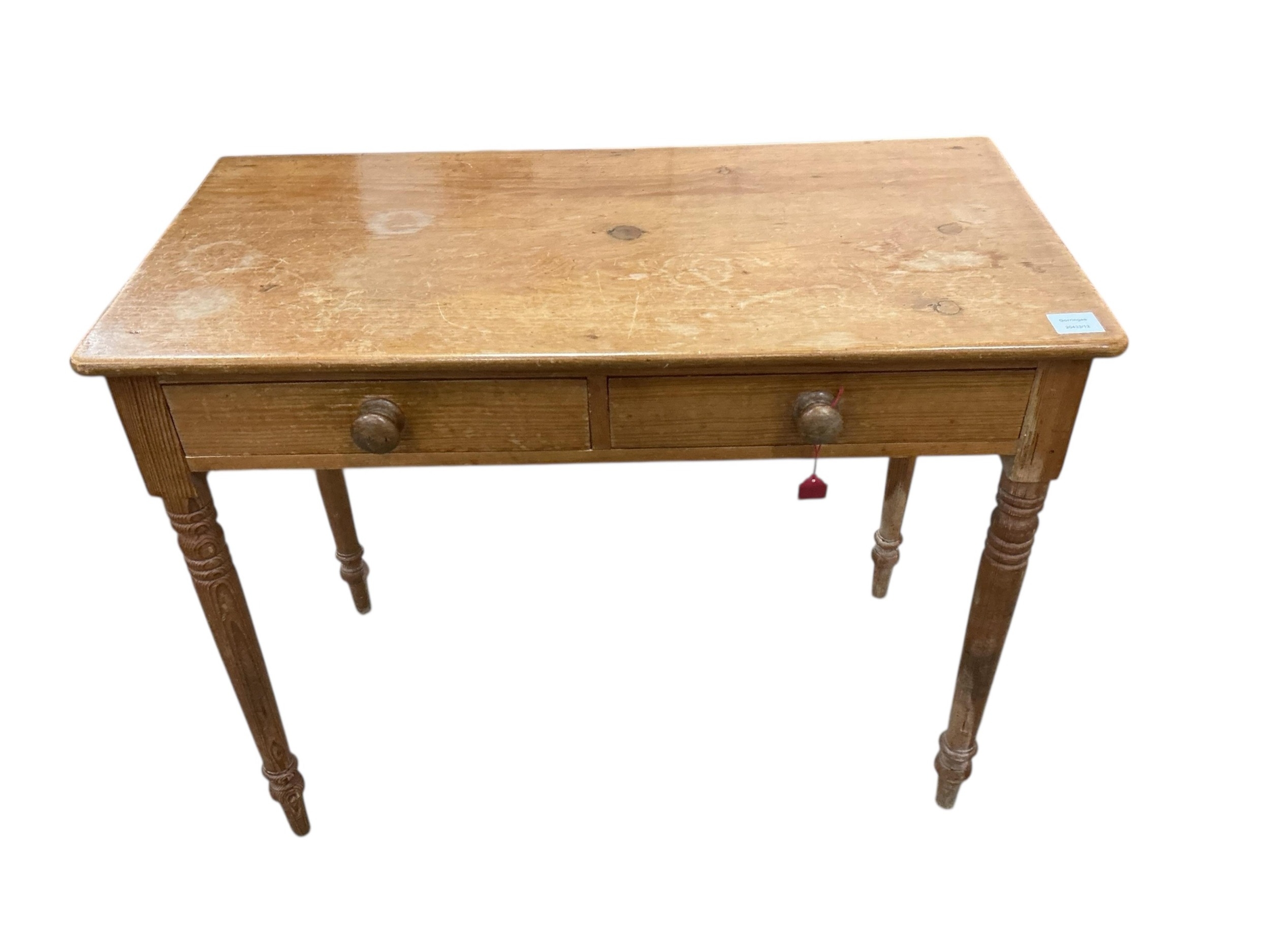 A Victorian mahogany two drawer pine side table, width 91cm, depth 45cm, height 74cm
