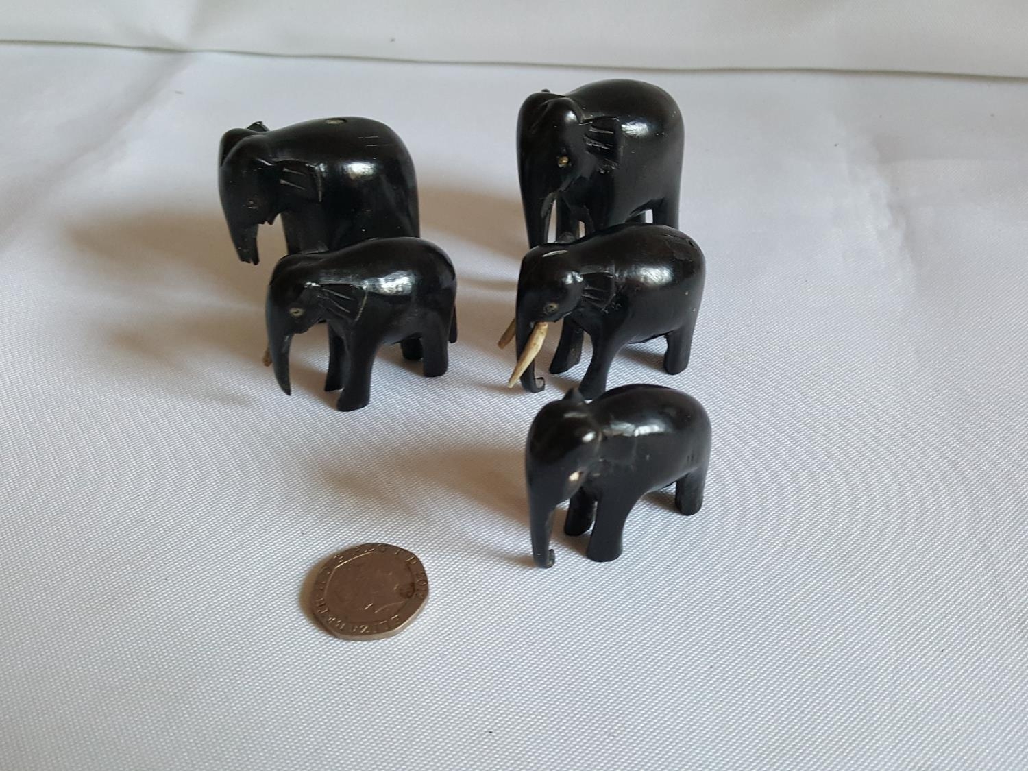 5 ebony elephants