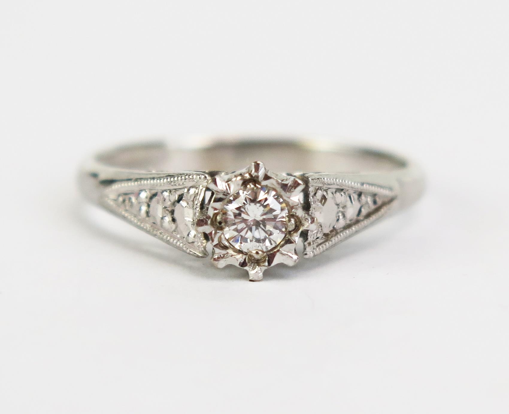 An 18ct White Gold and Diamond Solitaire Ring, c. 3.8mm illusion set stone, hallmarked, size N, 3.32g