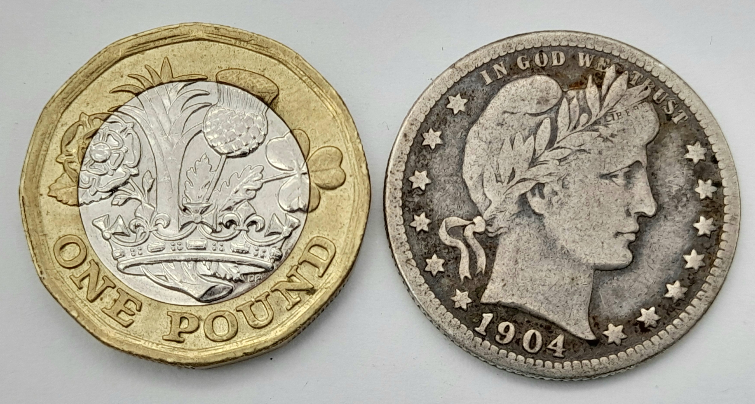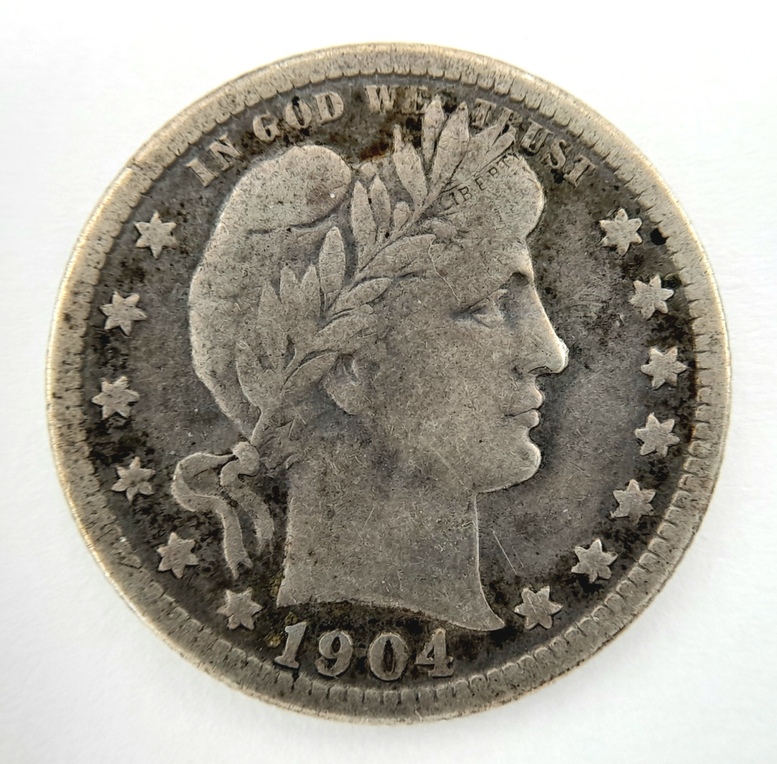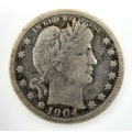 A USA 1904 Silver Quarter Dollar Coin.