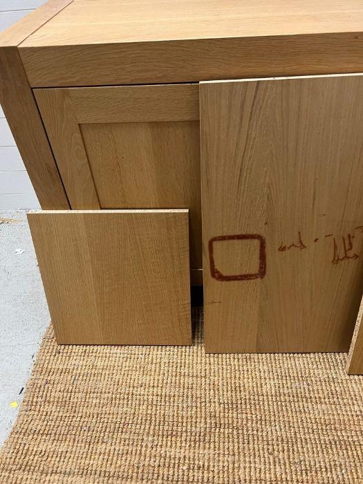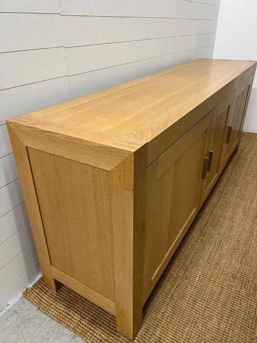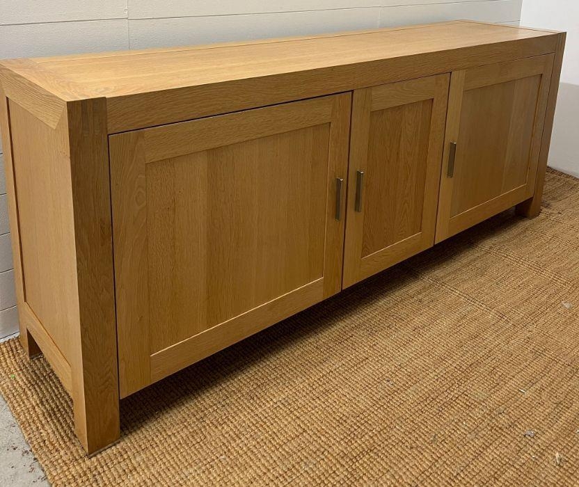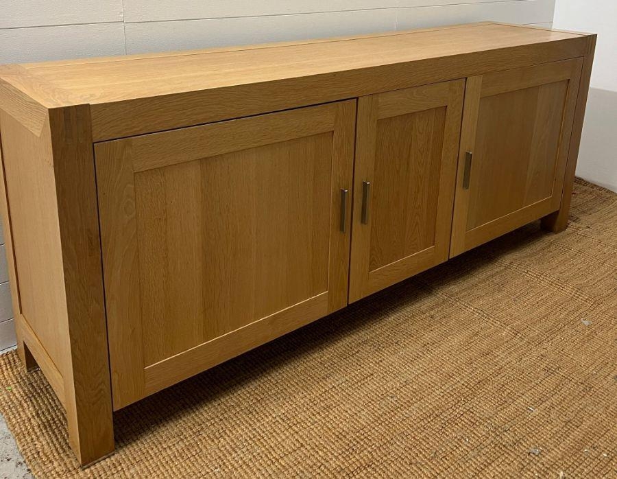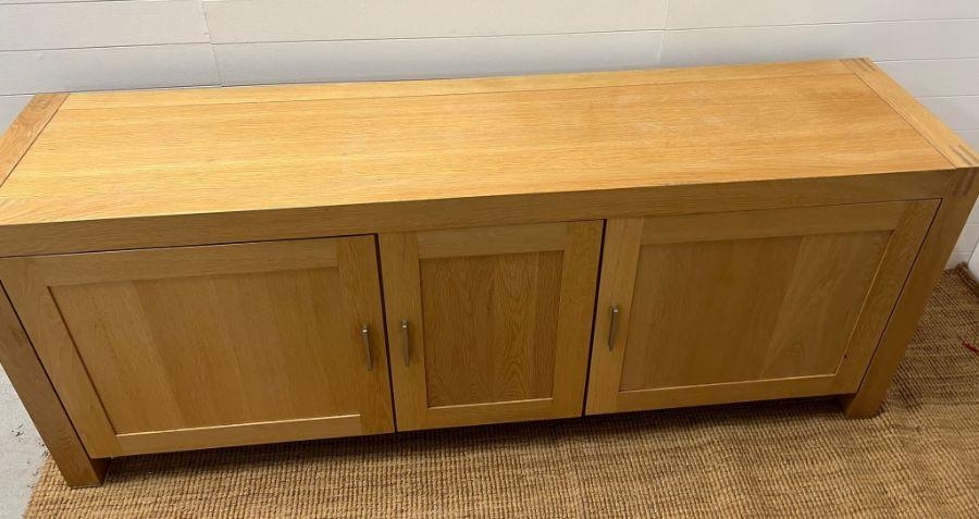 A large light oak sideboard with chrome handles (H90cm W226cm D53cm)