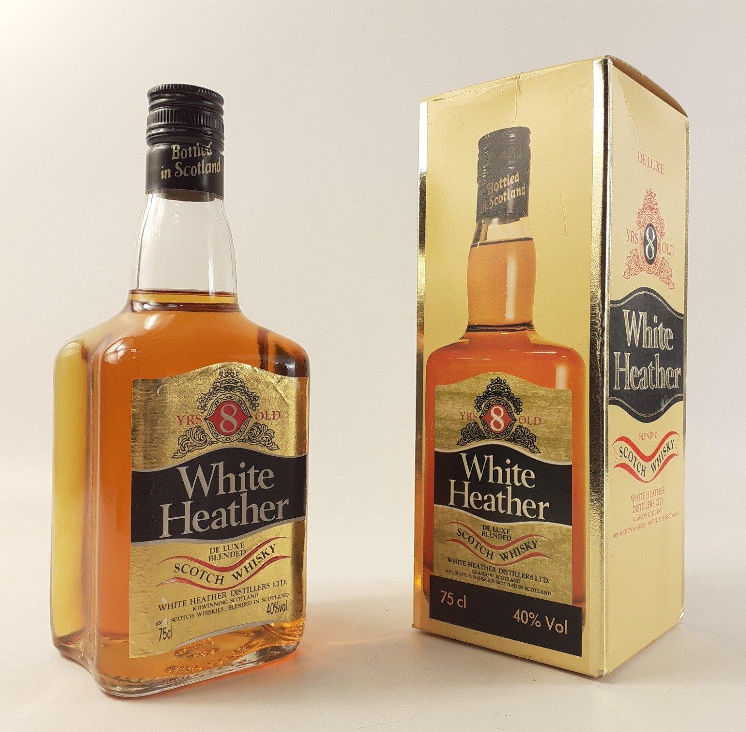 WHITE HEATHER 8 Years Old De Luxe Blended Scotch Whisky in box, 75cl. Well stored.