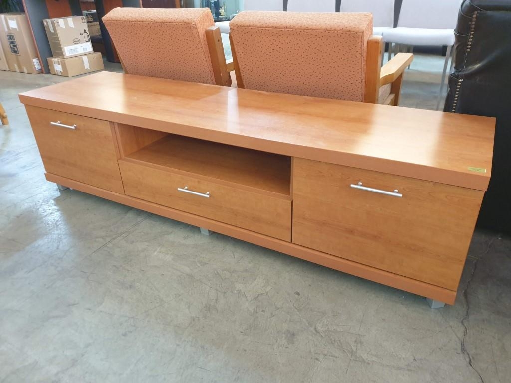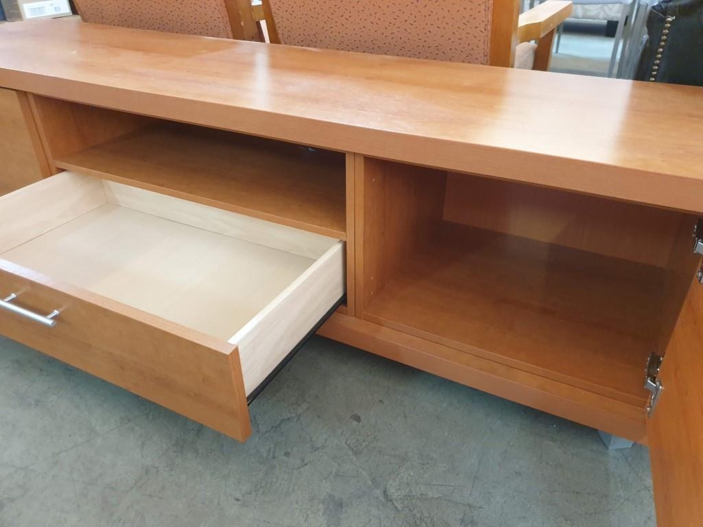 Cherry Wood TV Unit with 2 - Cupboards and Drawer (175 x 46 x 46cm)