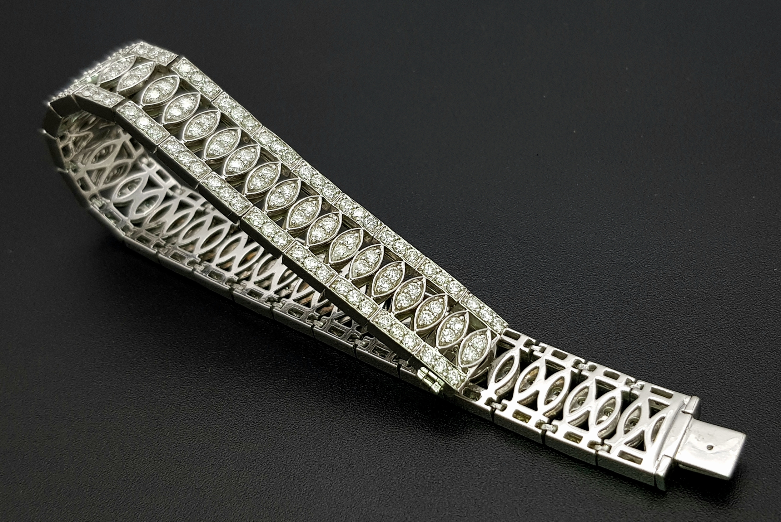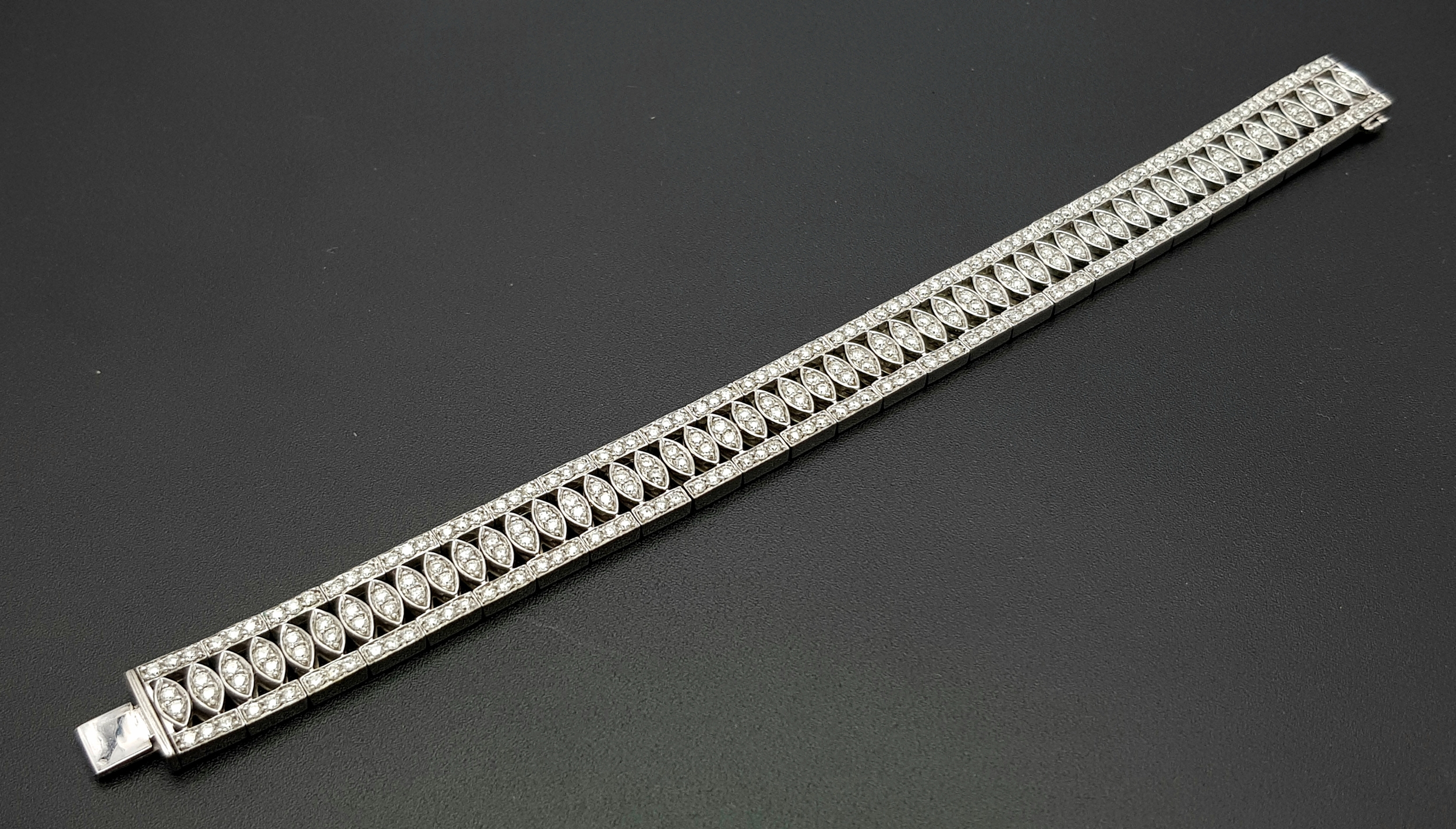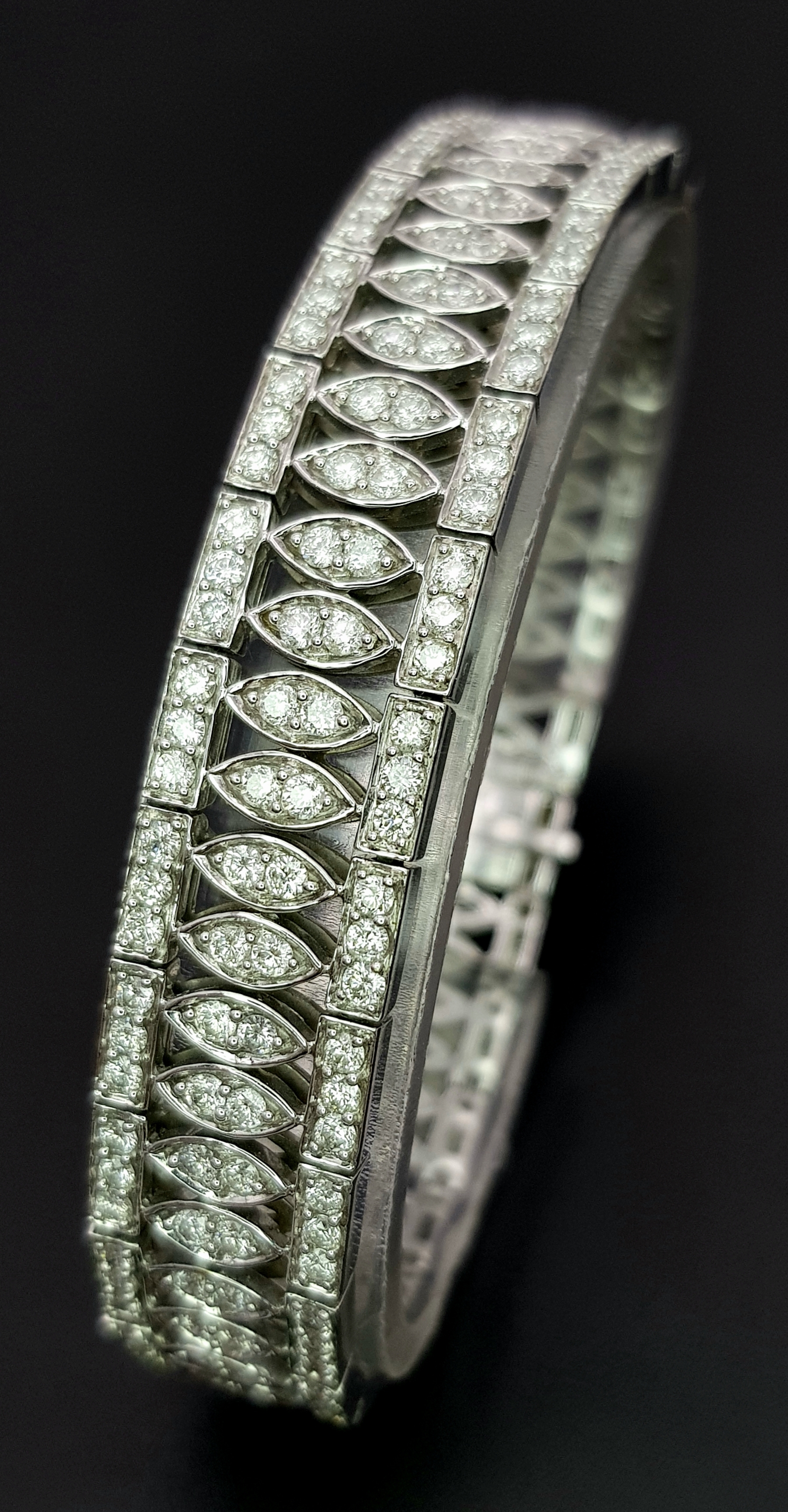 18K WHITE GOLD DIAMOND SET BRACELET, TOTAL 5.20CT DIAMONDS APPROX, TOTAL WEIGHT 39G BEAUTIFULLY MADE PIECE. Ref-TAN 5009