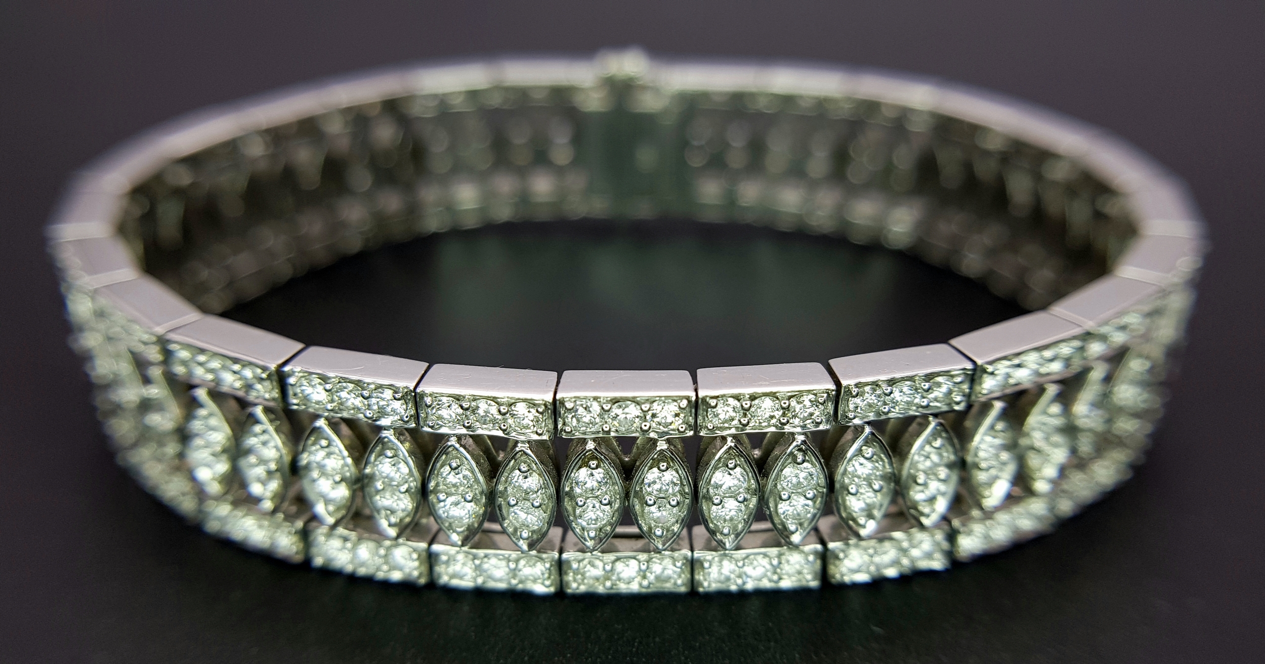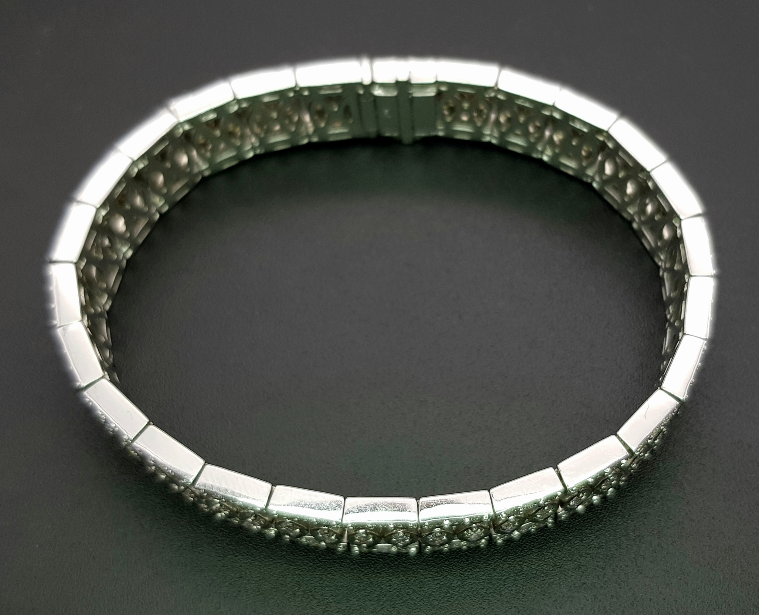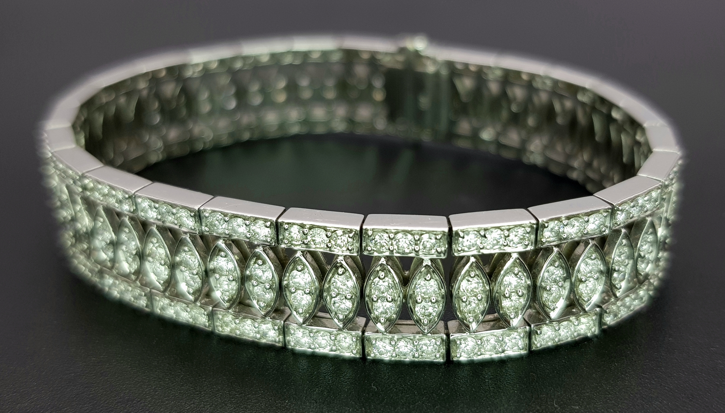 18K WHITE GOLD DIAMOND SET BRACELET, TOTAL 5.20CT DIAMONDS APPROX, TOTAL WEIGHT 39G BEAUTIFULLY MADE PIECE. Ref-TAN 5009
