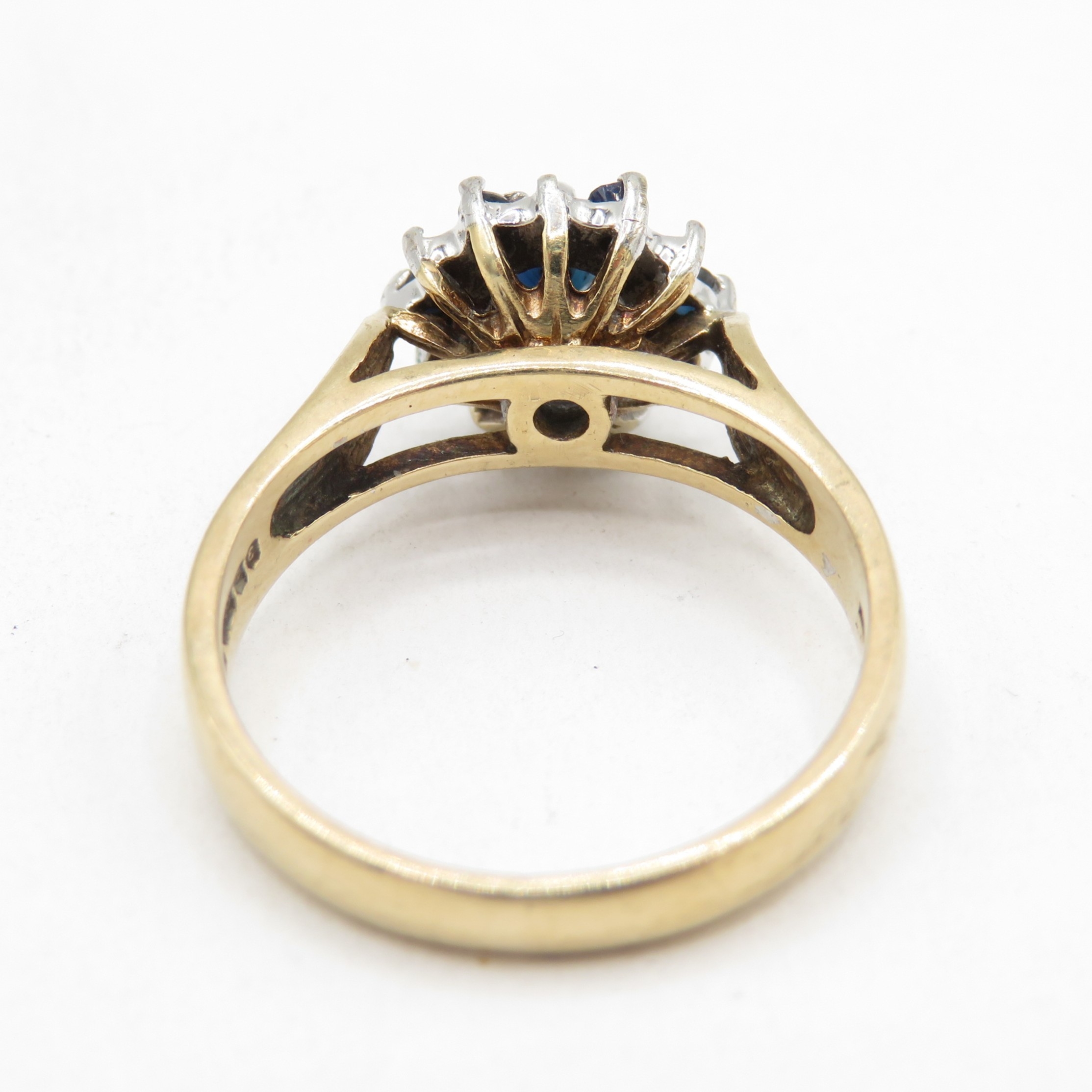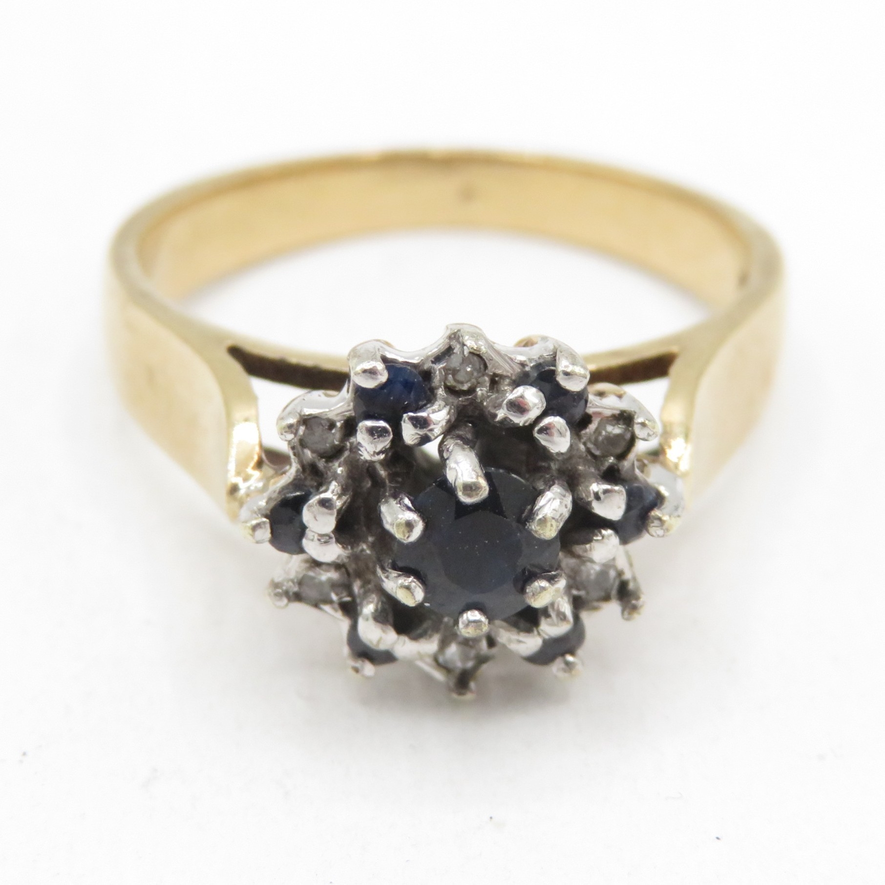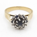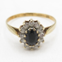 9ct gold diamond and sapphire halo ring (4g) Size O