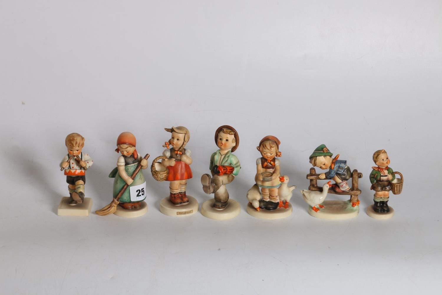 Goebel Hummel figures to include #109 Happy Traveler, #195 Barnyard Hero, #98 Little Shopper, #240 Little Drummer, #171 Little Sweeper, #197 Be Patient and #198 Home from Market. (7)