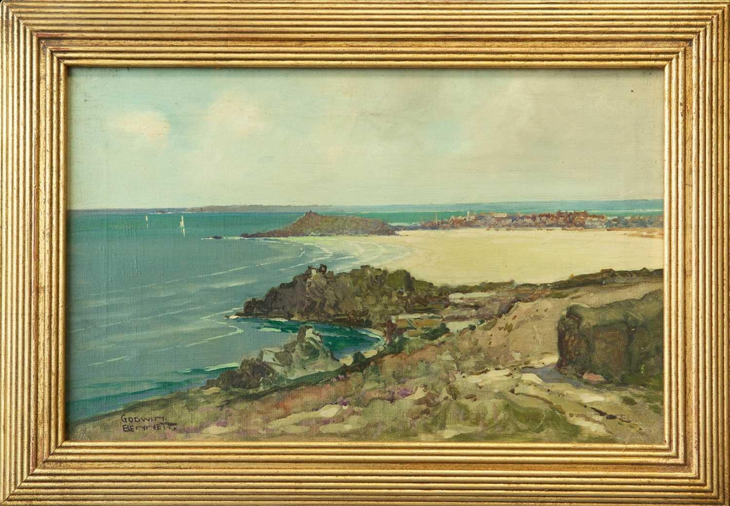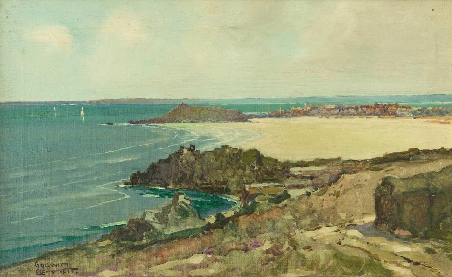 Godwin BENNETT (1888-1950) Porthmeor Beach, St Ives Oil on canvas, signed, 25 x 40cm, 35 x 49cm framed.