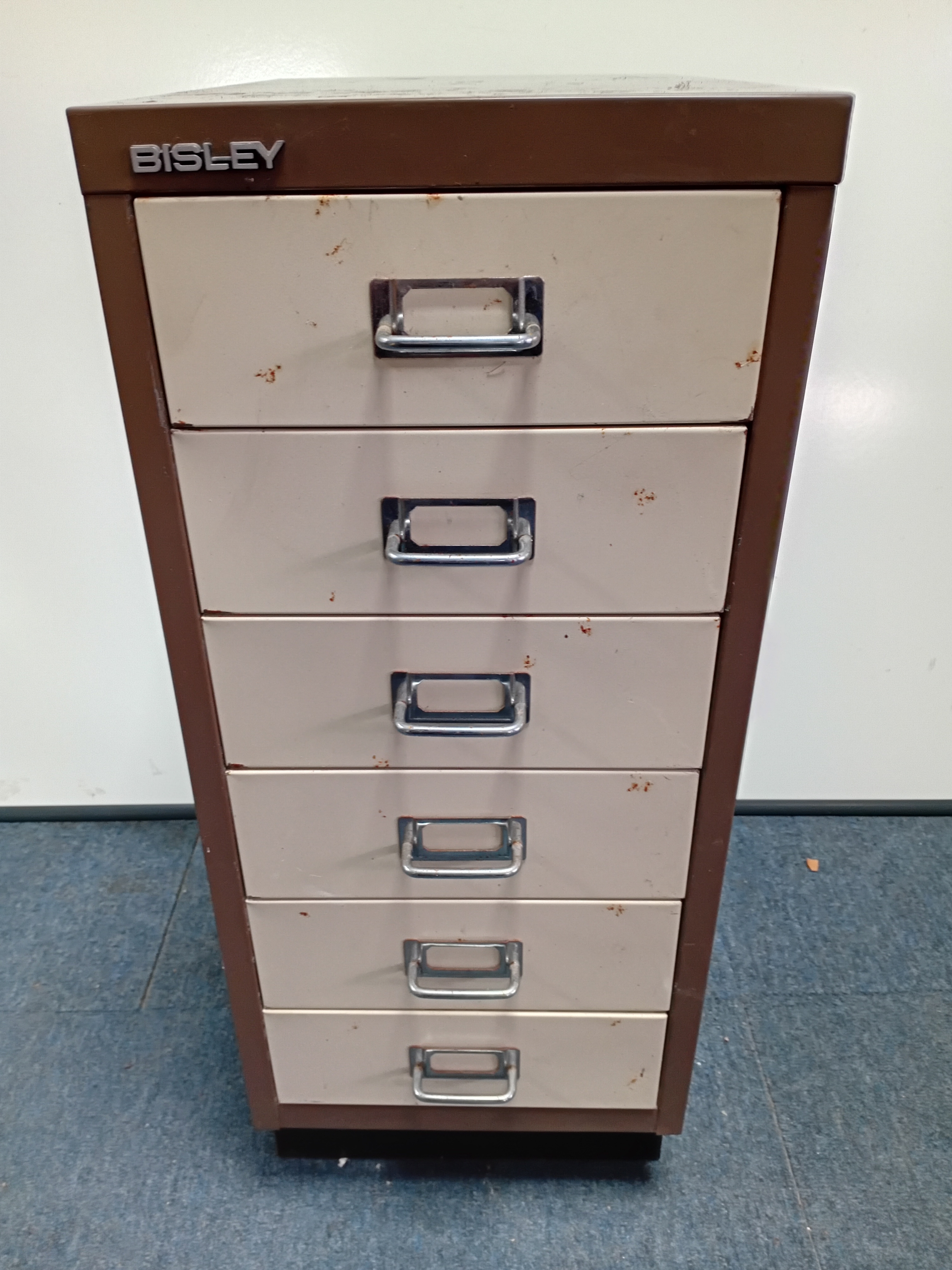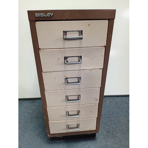 A vintage 'Bisley' 6-drawer steel filing cabinet L40 W28 H65