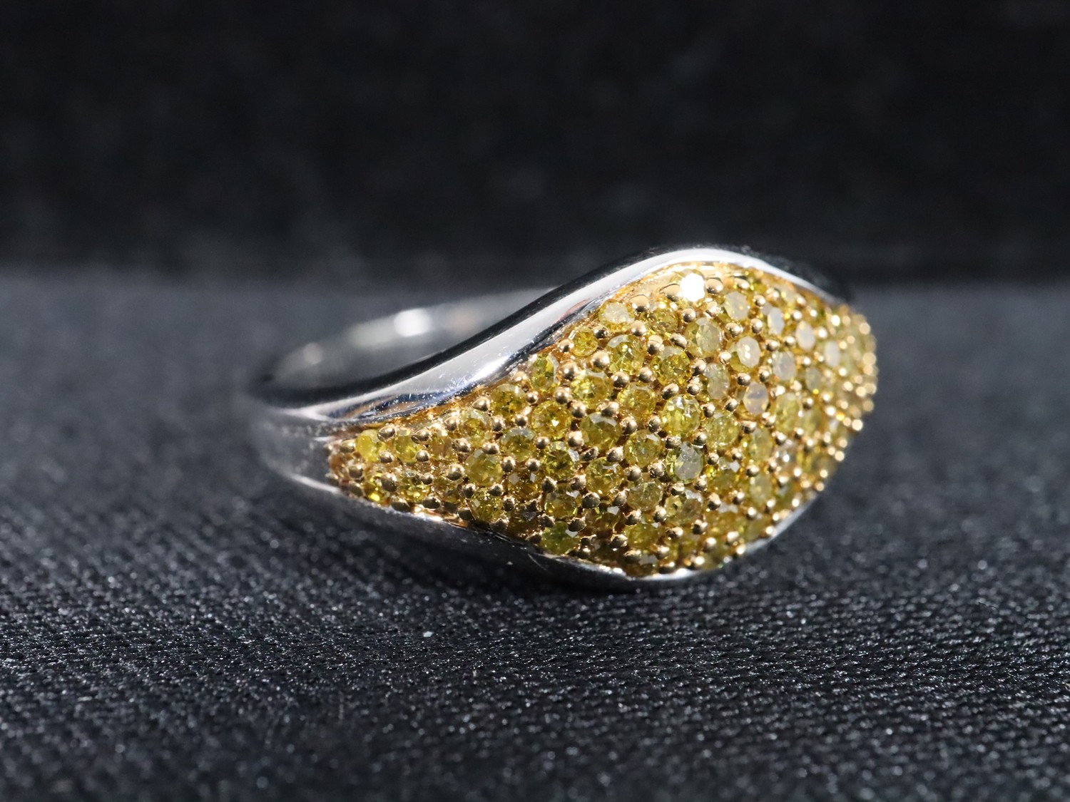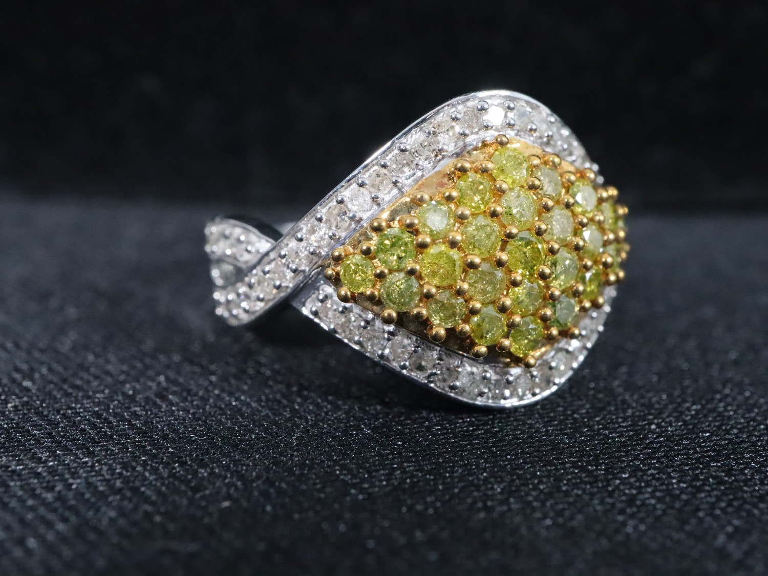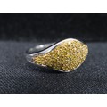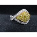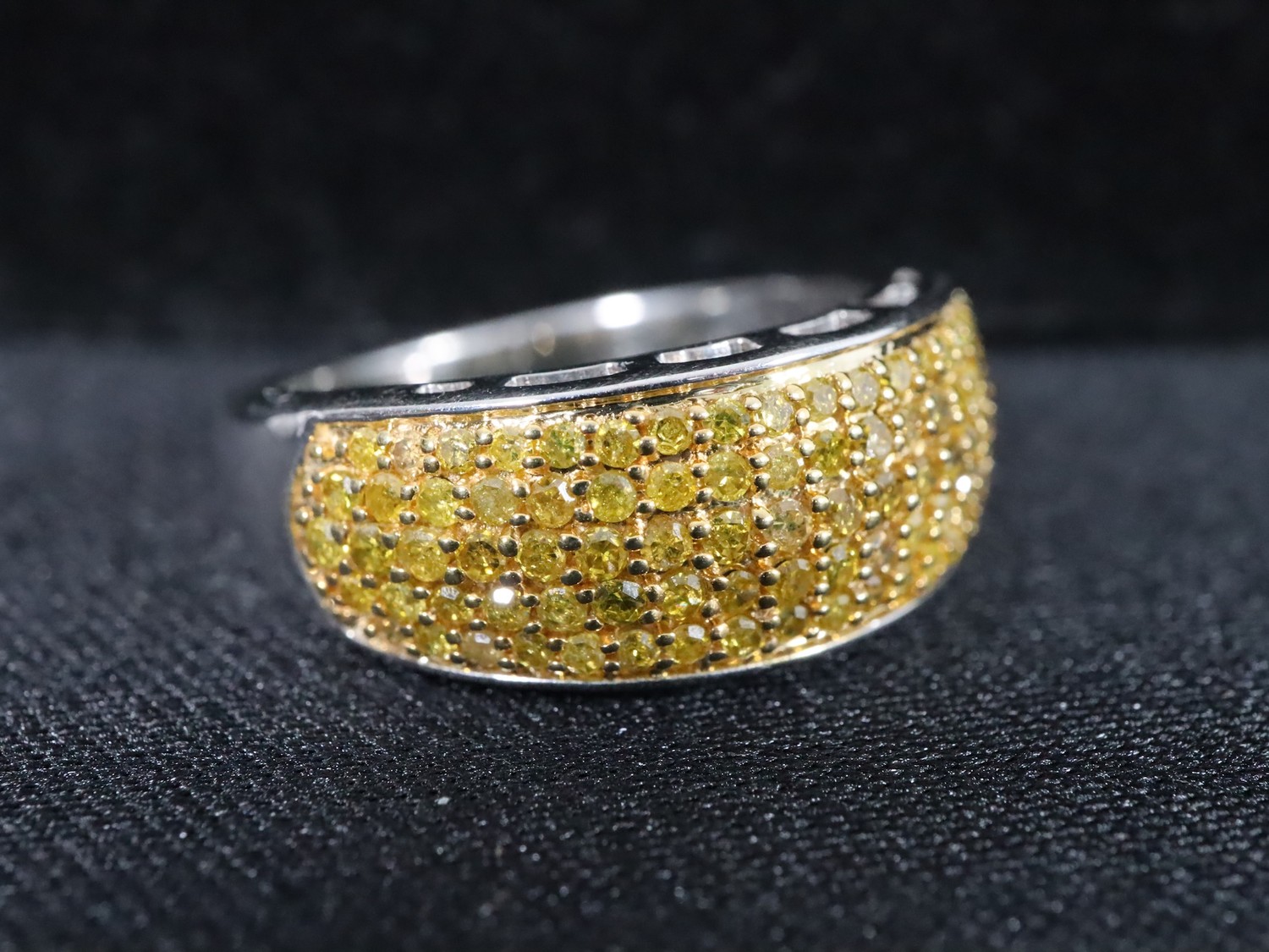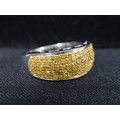 1/2ct Yellow Diamond 9K White Gold Ring Size N to O (3.6g), 3/4ct Yellow Diamond Sterling Silver Ring, 1ct Yellow & White Diamond Sterling Silver Ring Size 7