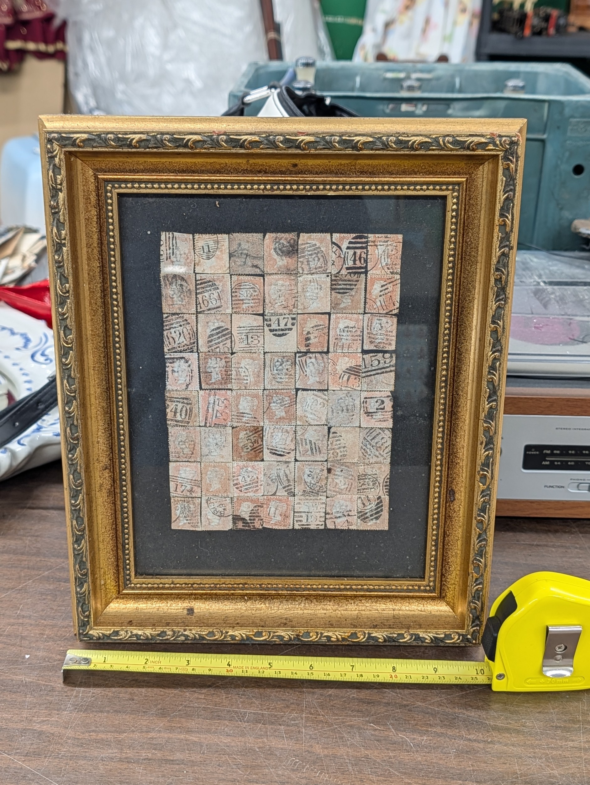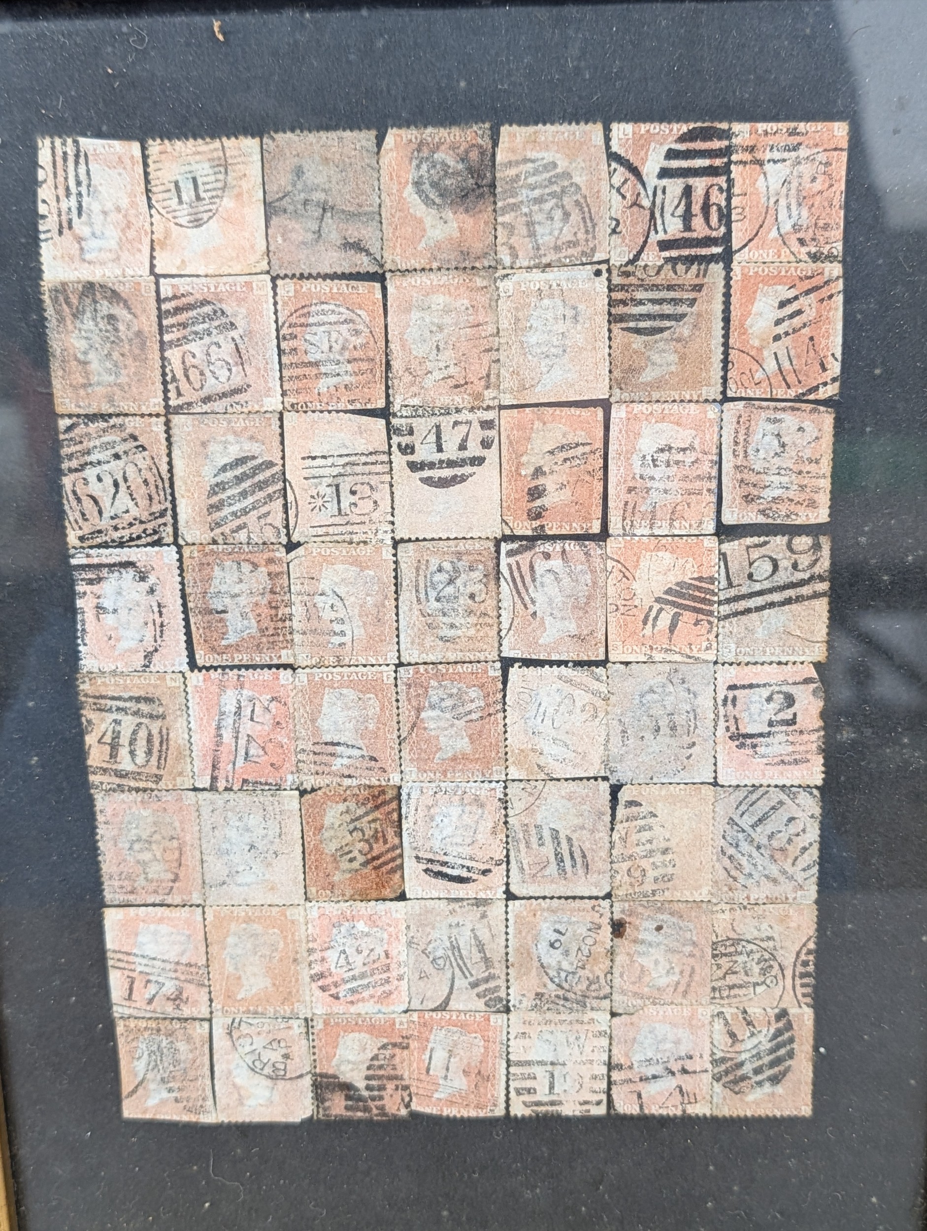 10.5 x 12.375" Framed UK 19th Century 1d Penny Red Stamps
