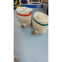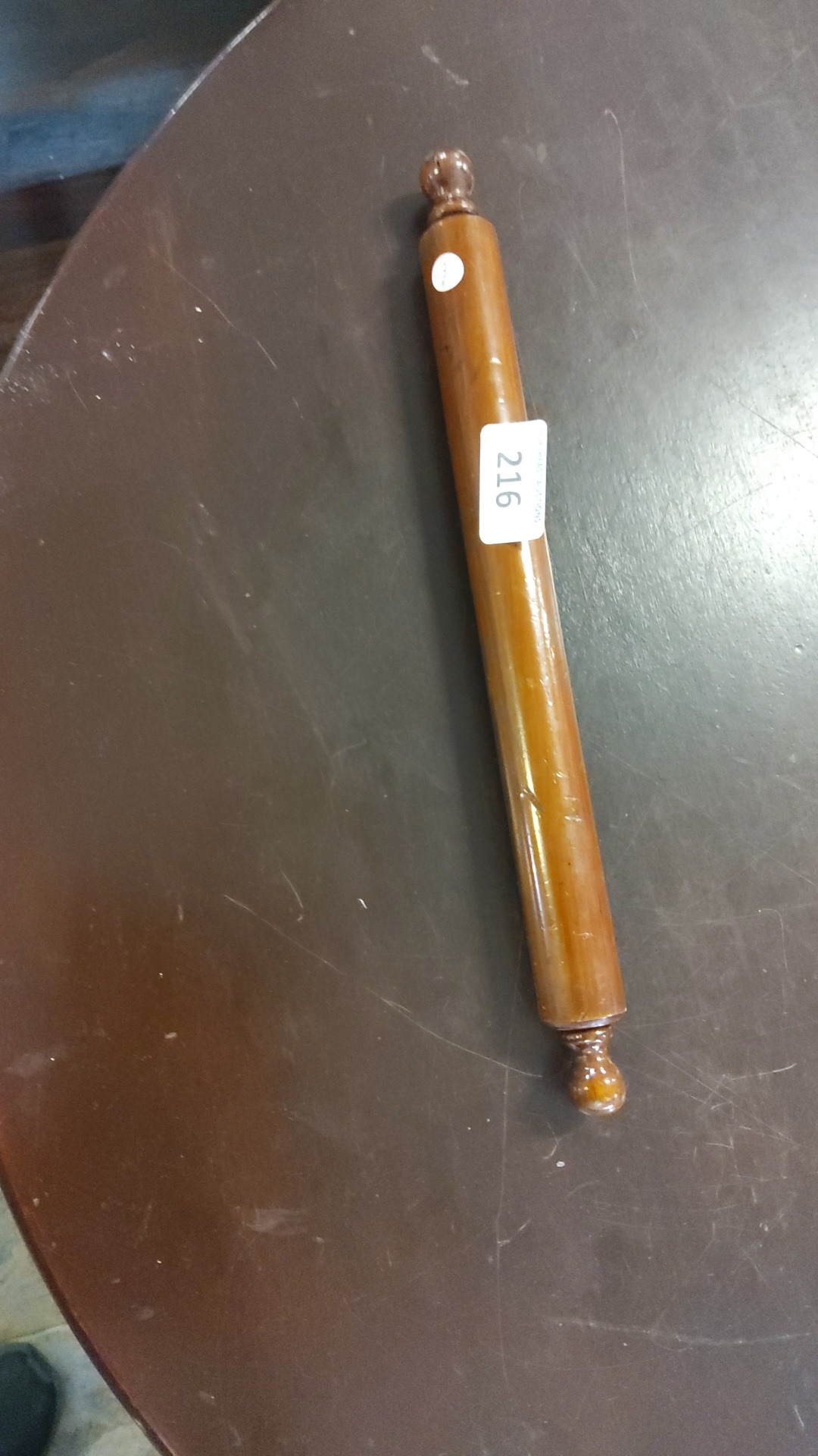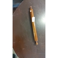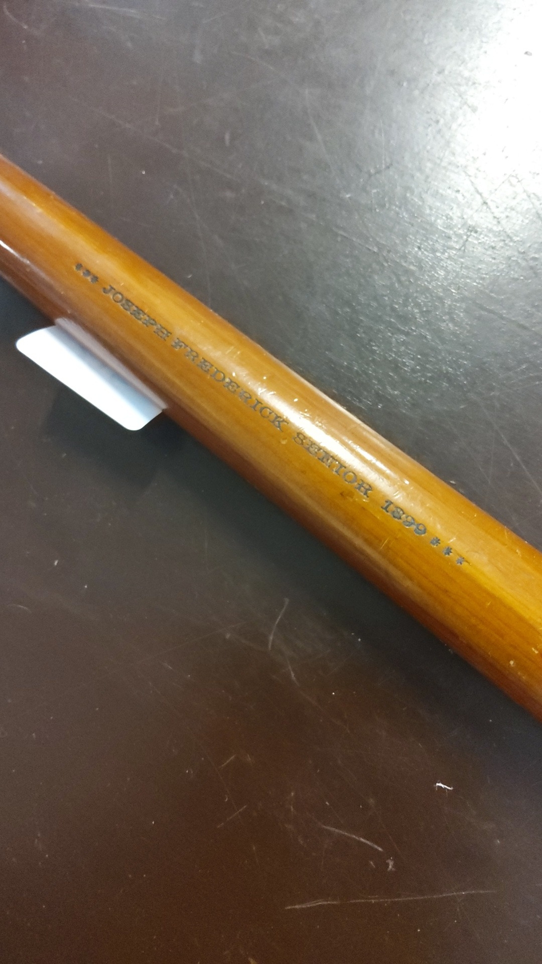 Commemorative wooden pencil holder of cylindrical form with turned finials, printed 'Joseph's Frederick Senior 1899' and star motifs.