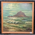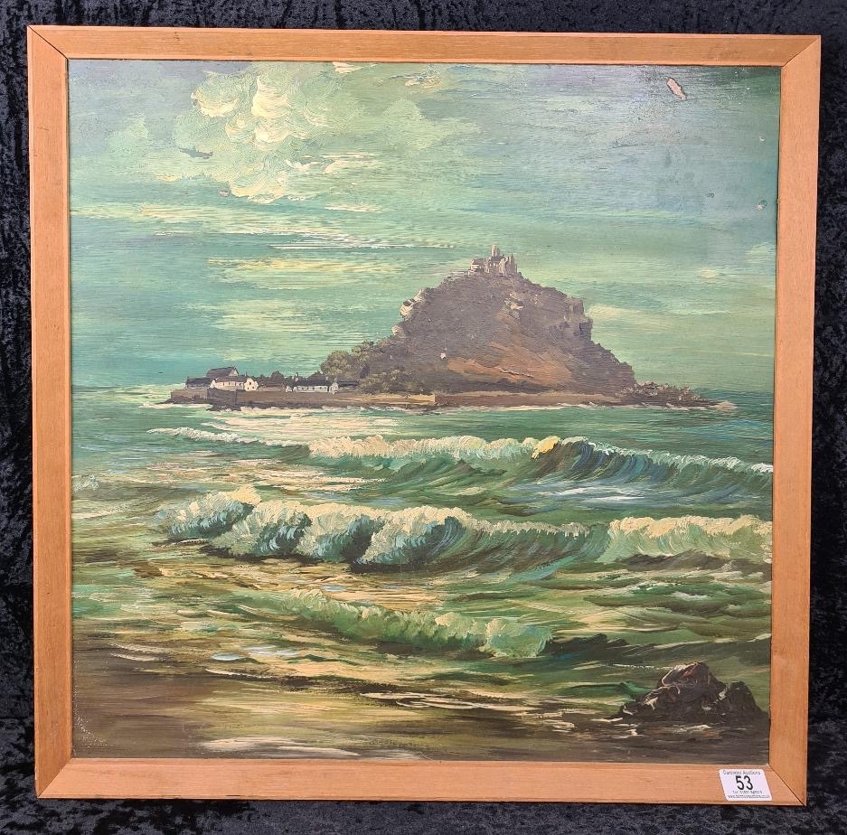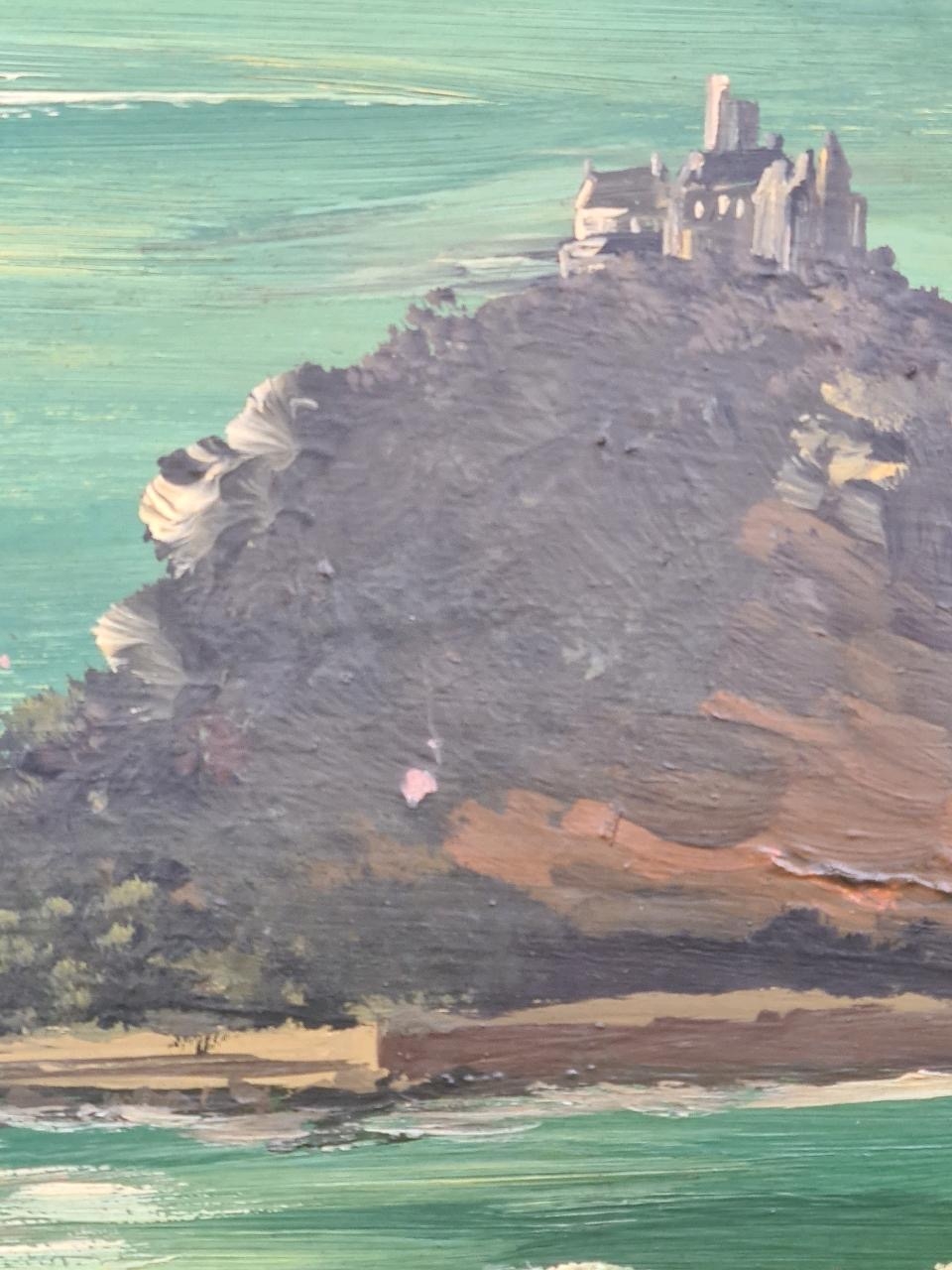 Framed oil on board of St Michael's Mount, Marazion in Cornwall - painted in an impressionist style with impasto technique. Approx H65 x W65cm.