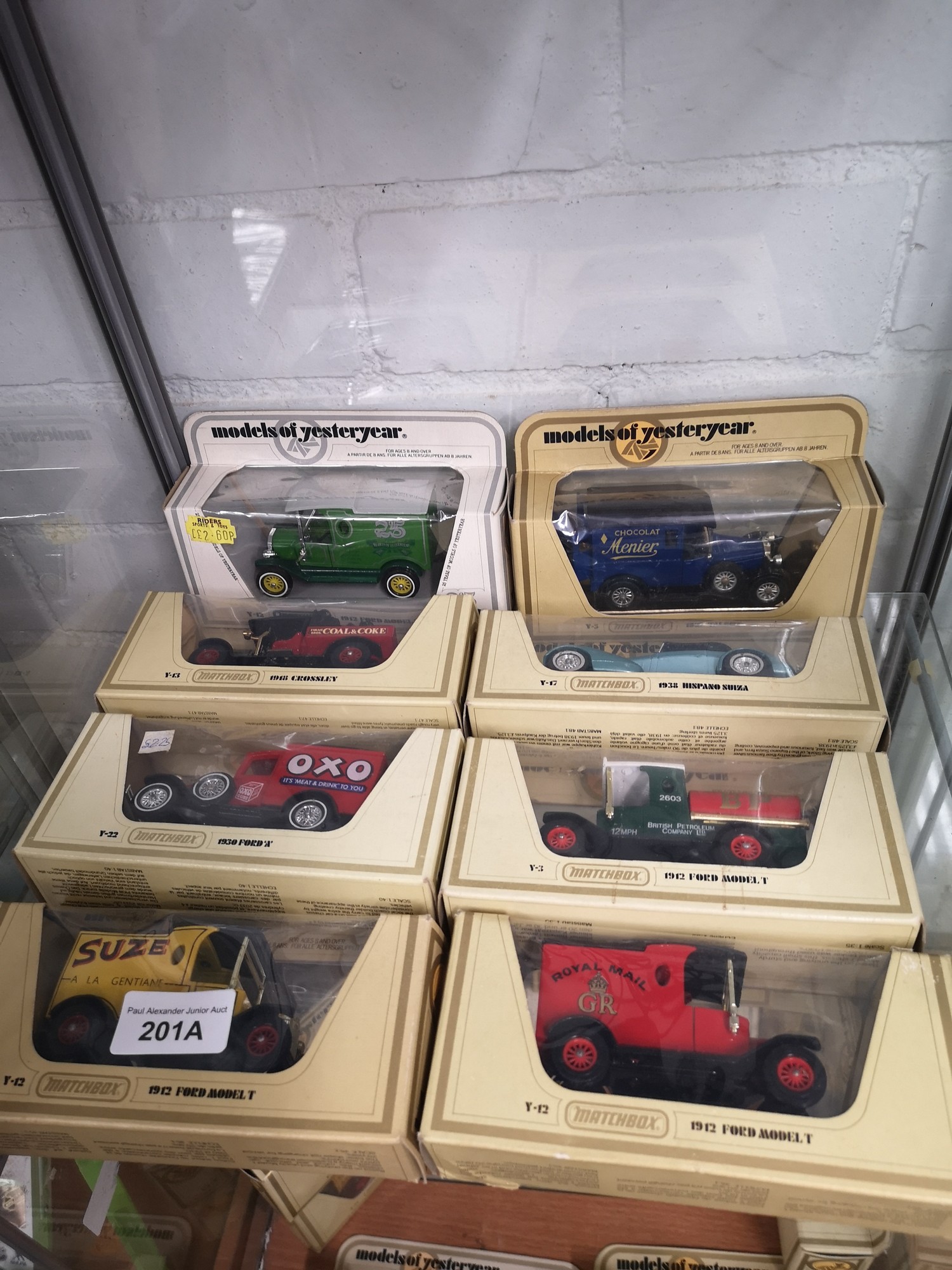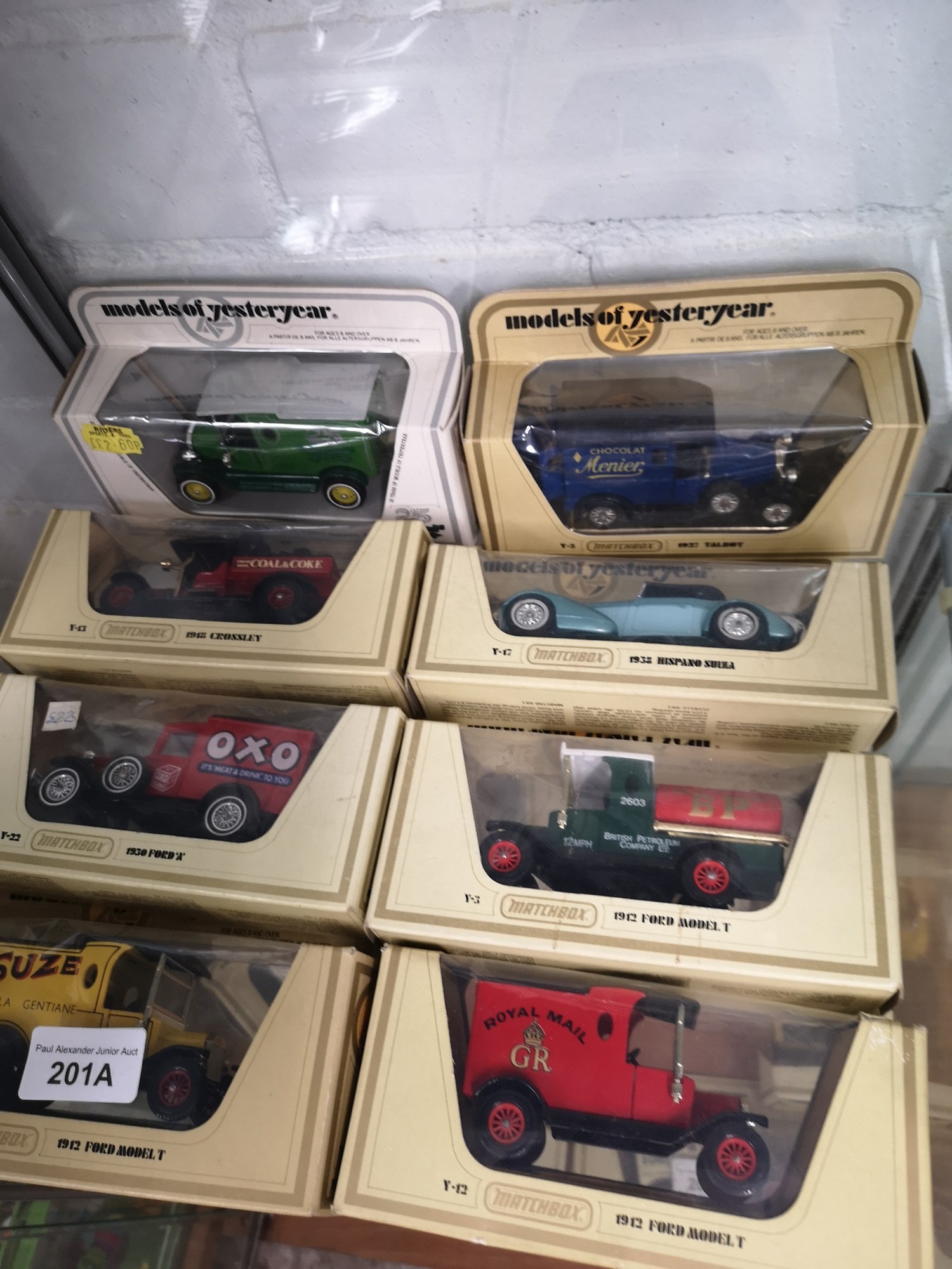 Shelf of matchbox yesteryear models.