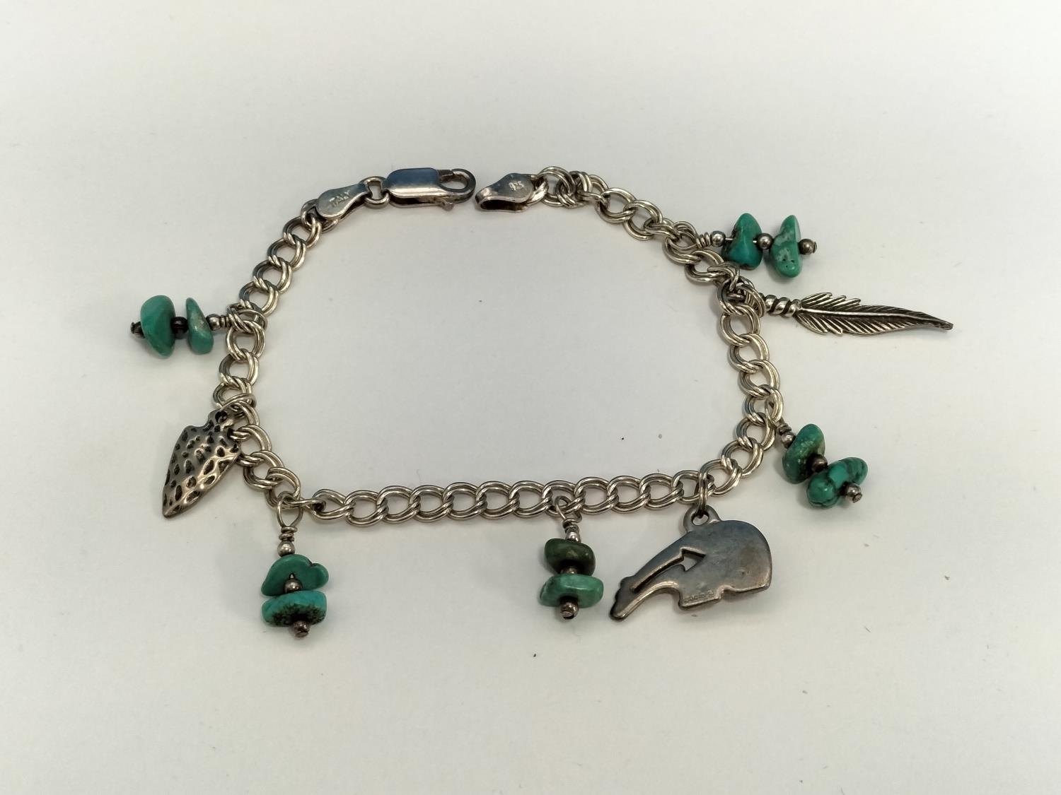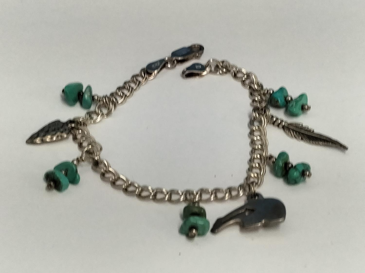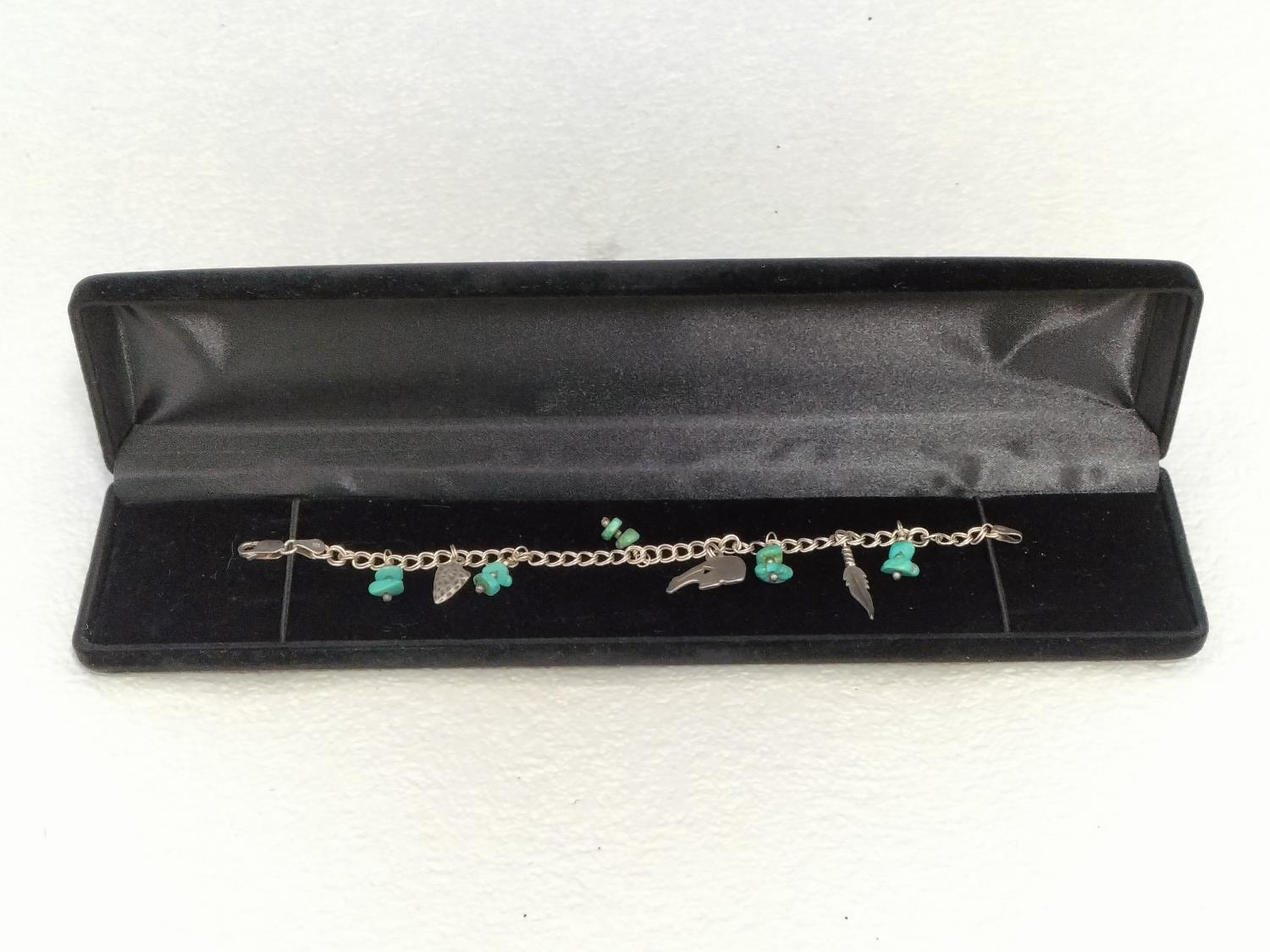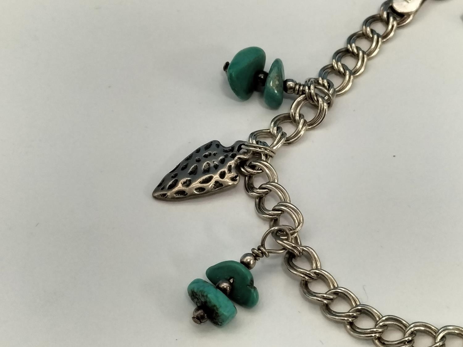 925 Silver and Turquoise 7" Charm Style Bracelet.