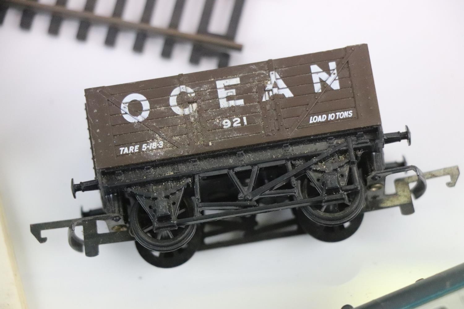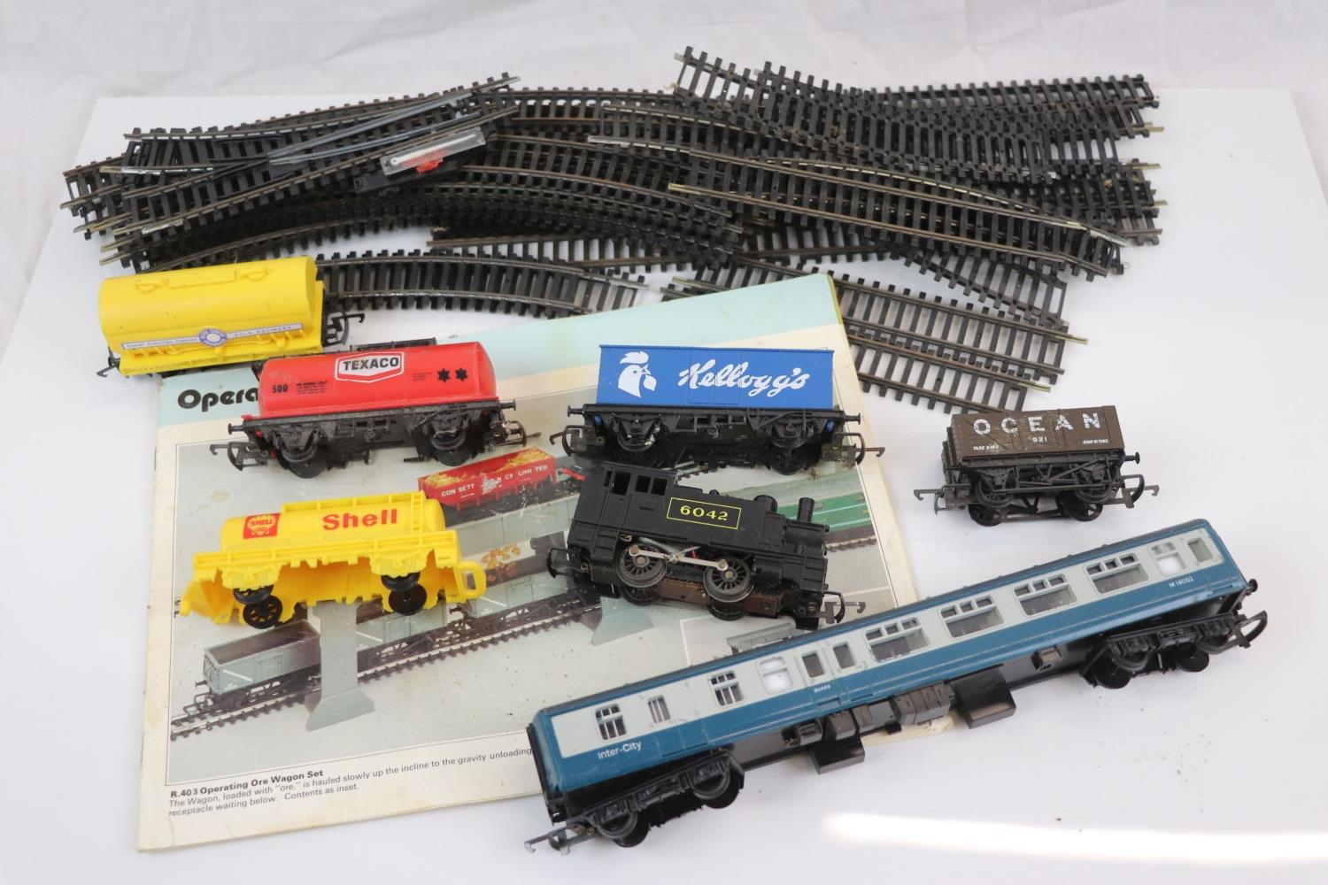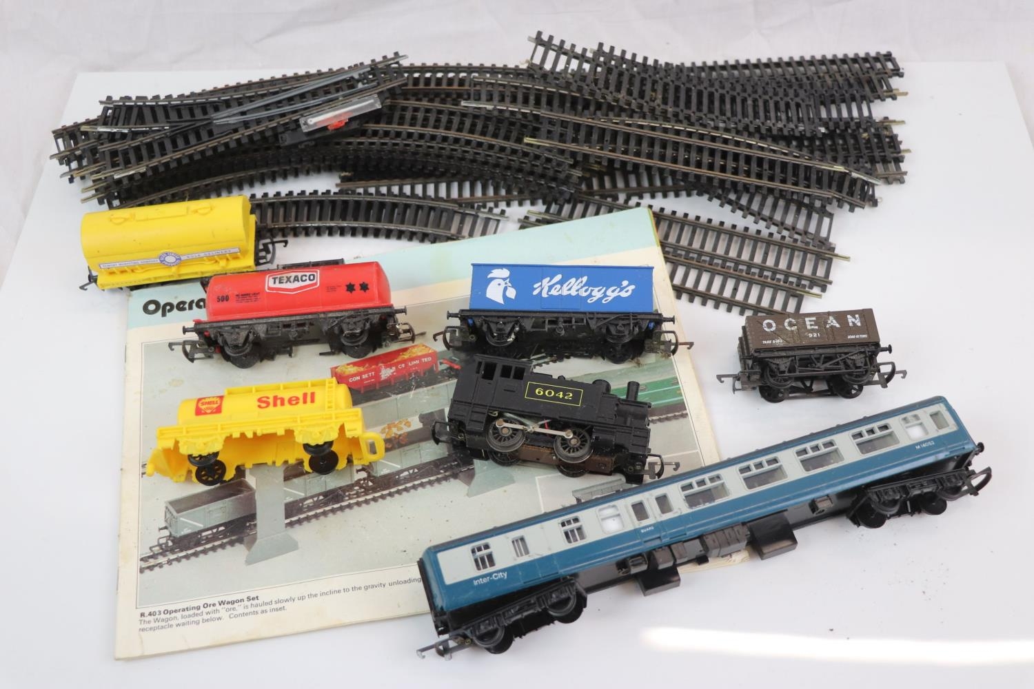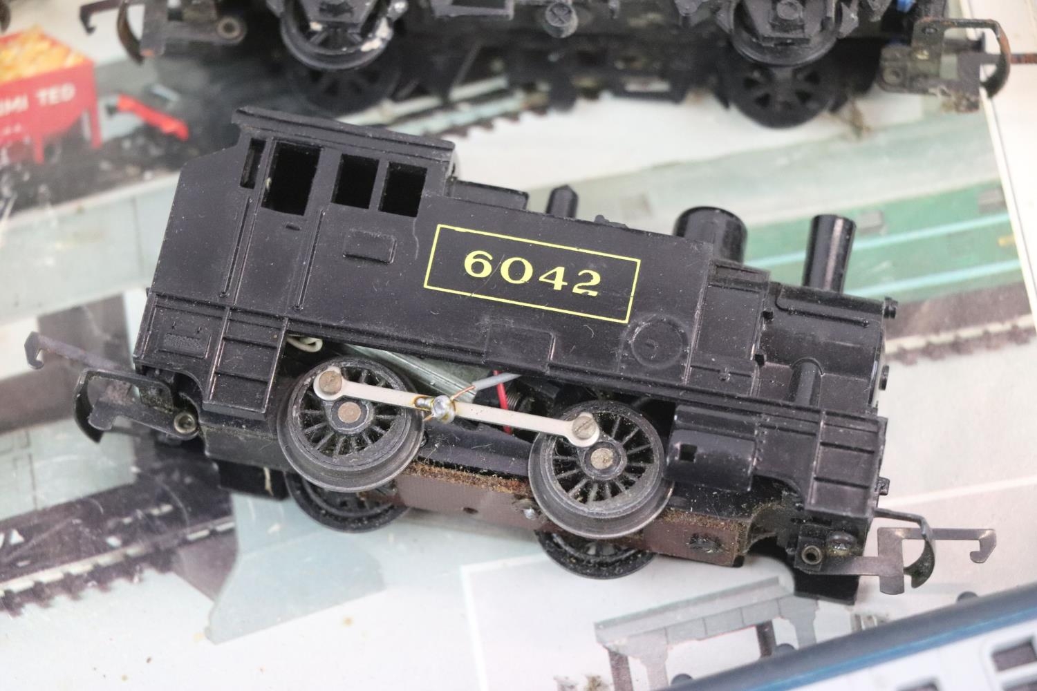 Group of OO gauge model railway to include 6 x items of Hornby rolling stock, 0-4-0 6042 tank locomotive and track