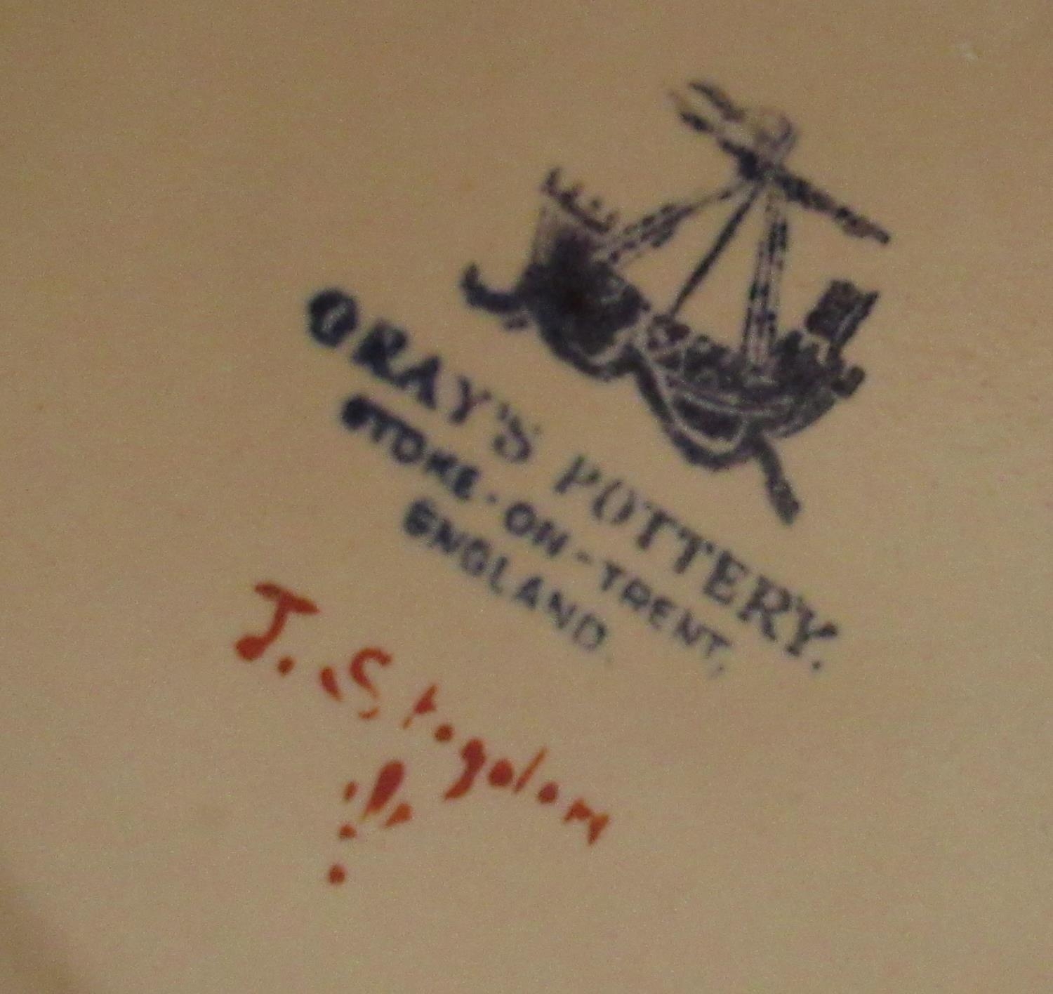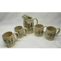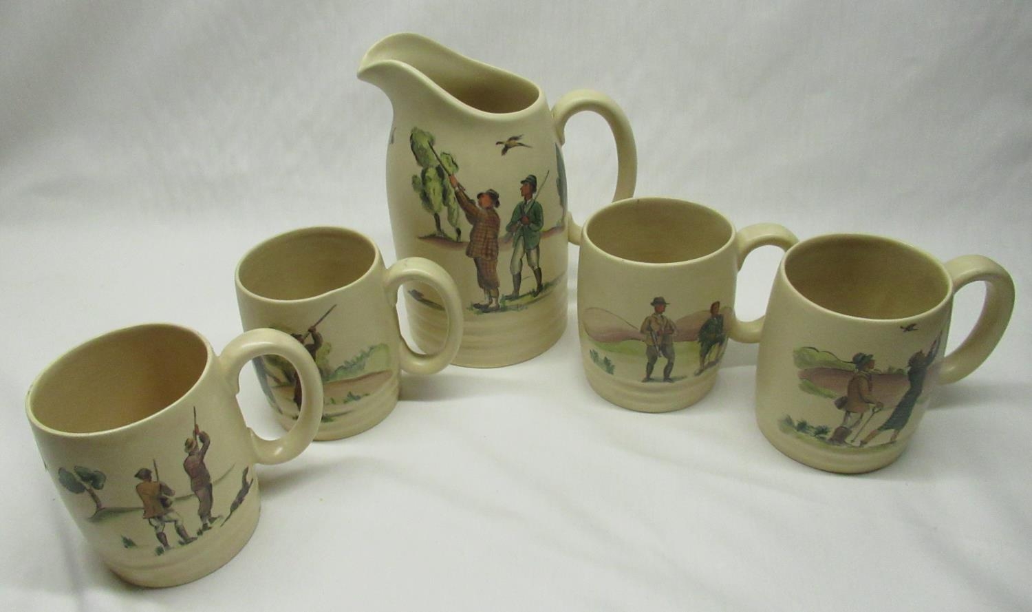 Gray's pottery beer jug and four mugs, painted with shooting scenes by J. Stogden H21cm (5)