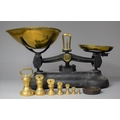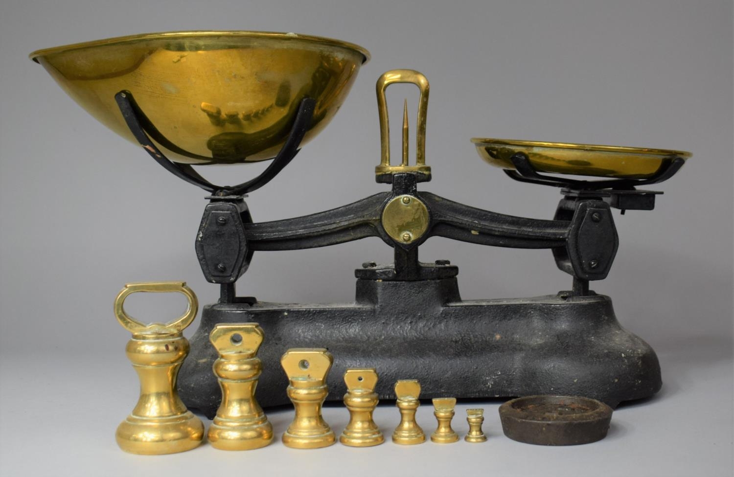 A Cast Metal Brass Mounted Kitchen Scale by Libra Complete with a Set of Graduated Brass Bell Weights