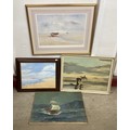 Four works, seaside and ship studies, unframed