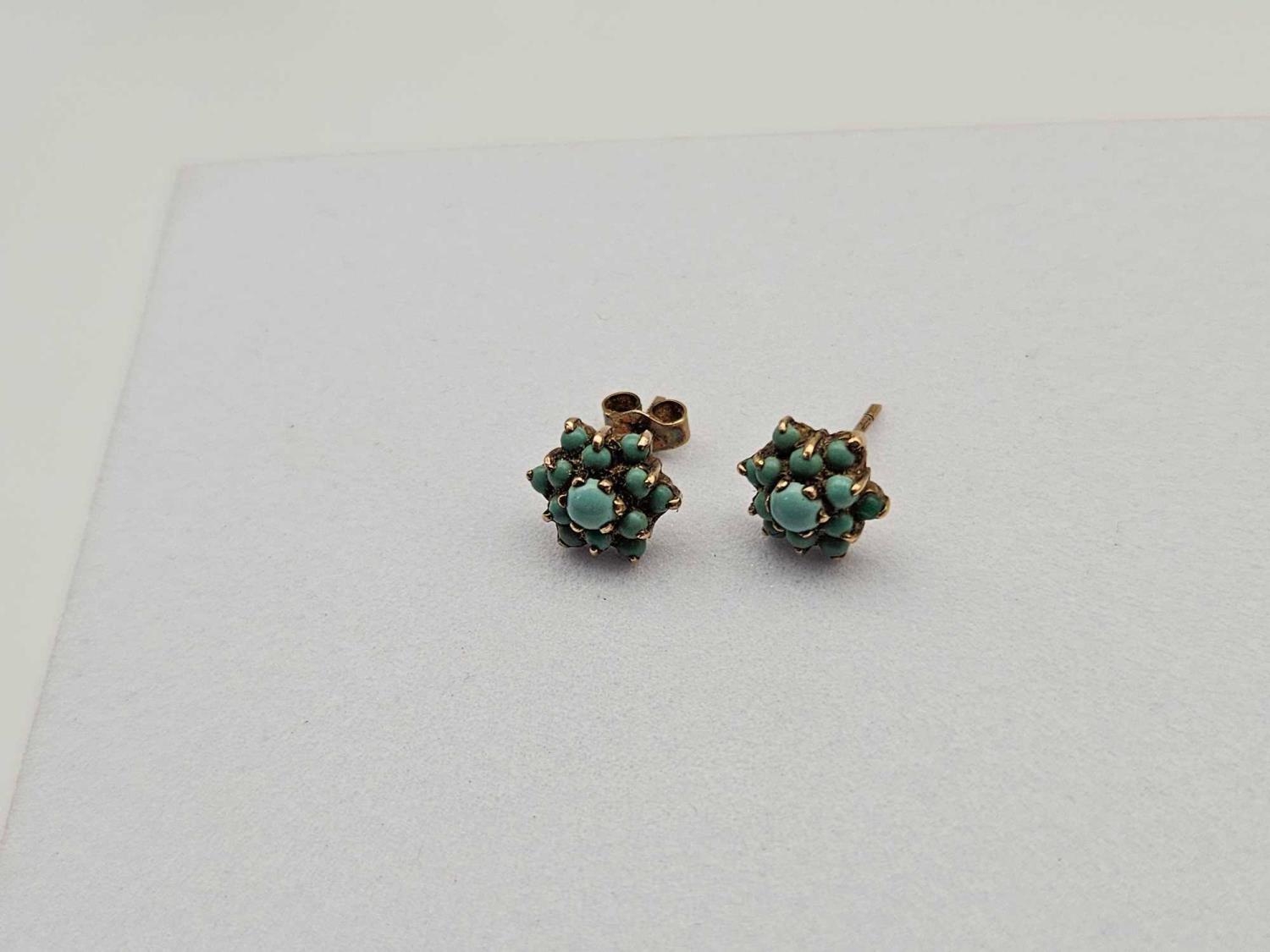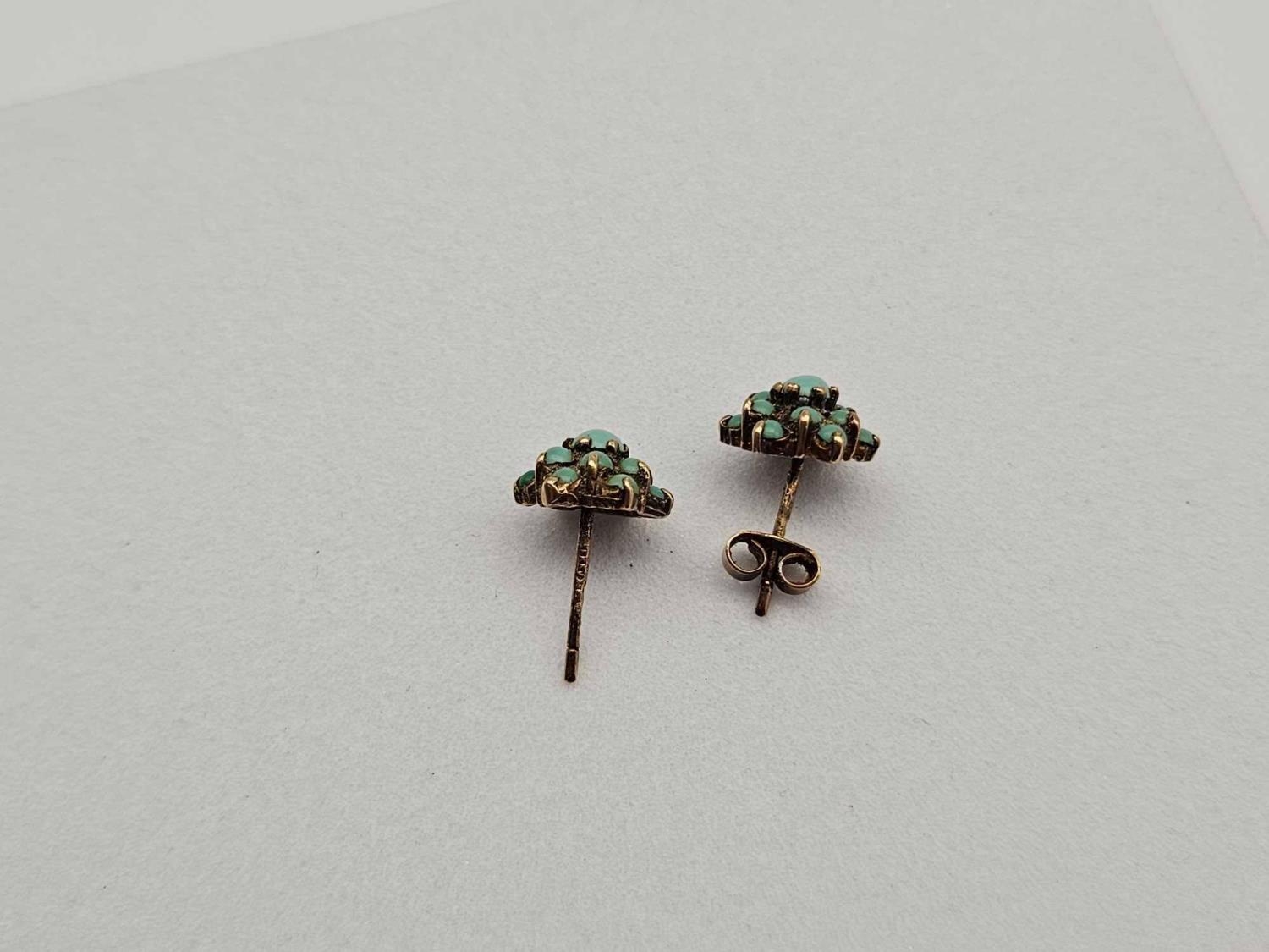 A turquoise cluster ear-rings 9ct 1.9g
