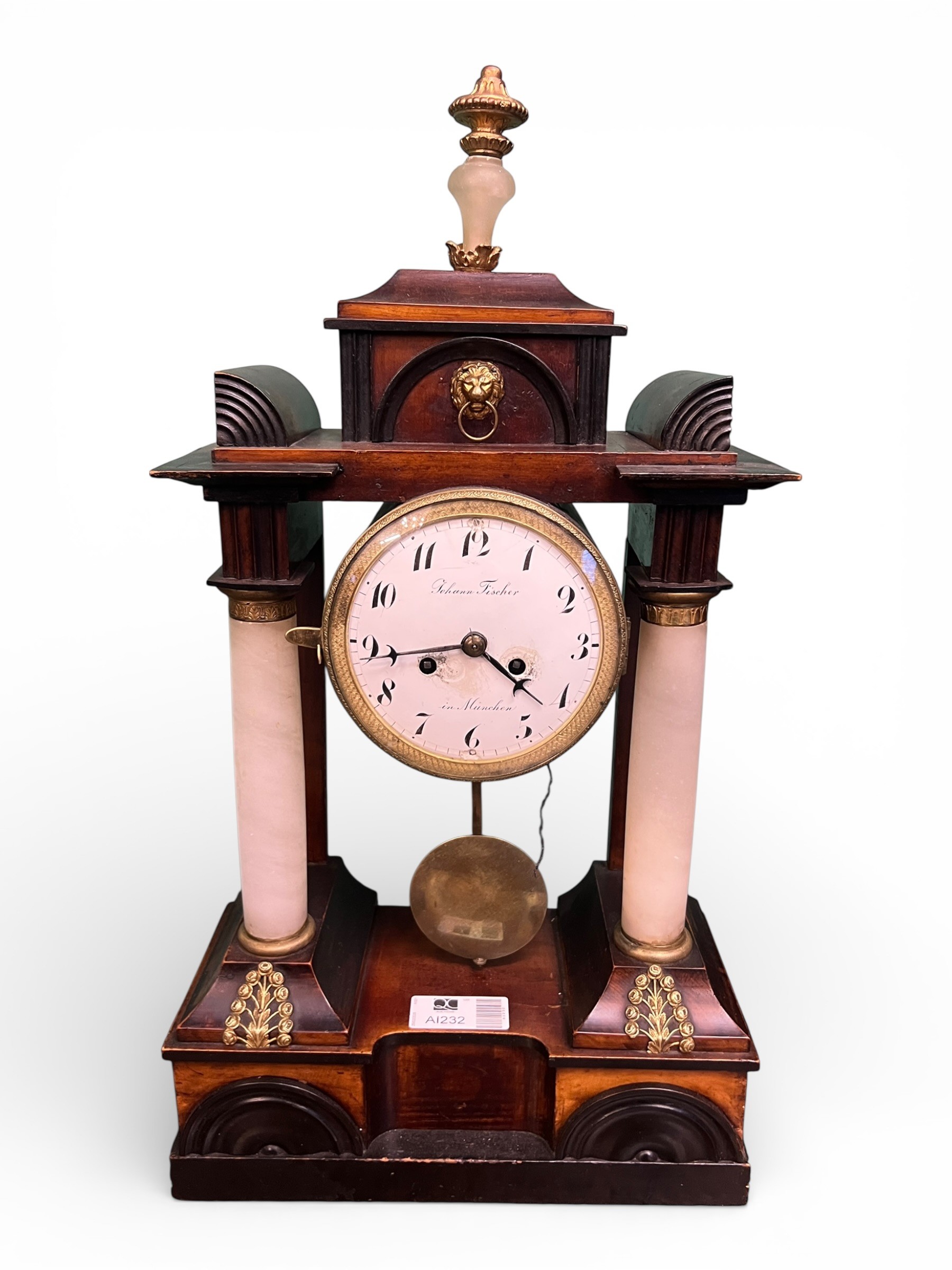 Mid-Century Biedermeier Clock with Marble Columns