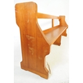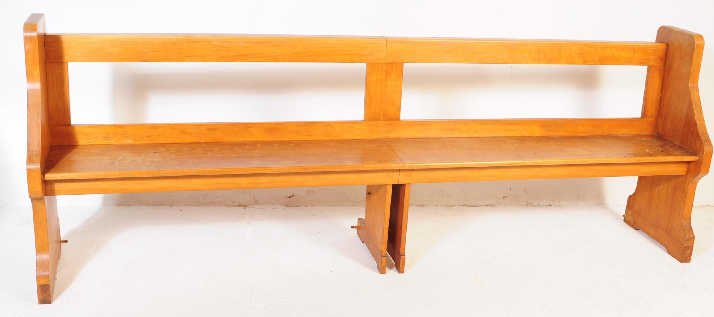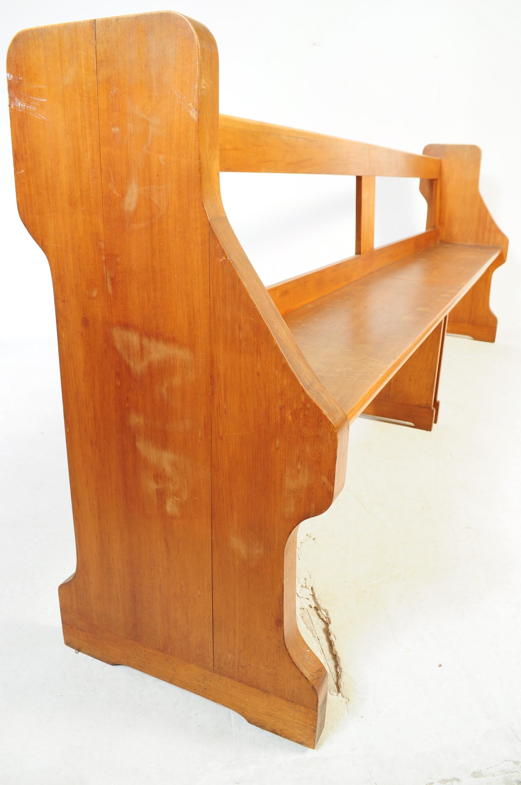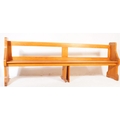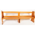 A large 19th century Victorian church pine pew. The large pew ideal as a hall settle. Block feet with a large planked seat with back rest to the upright rear.
