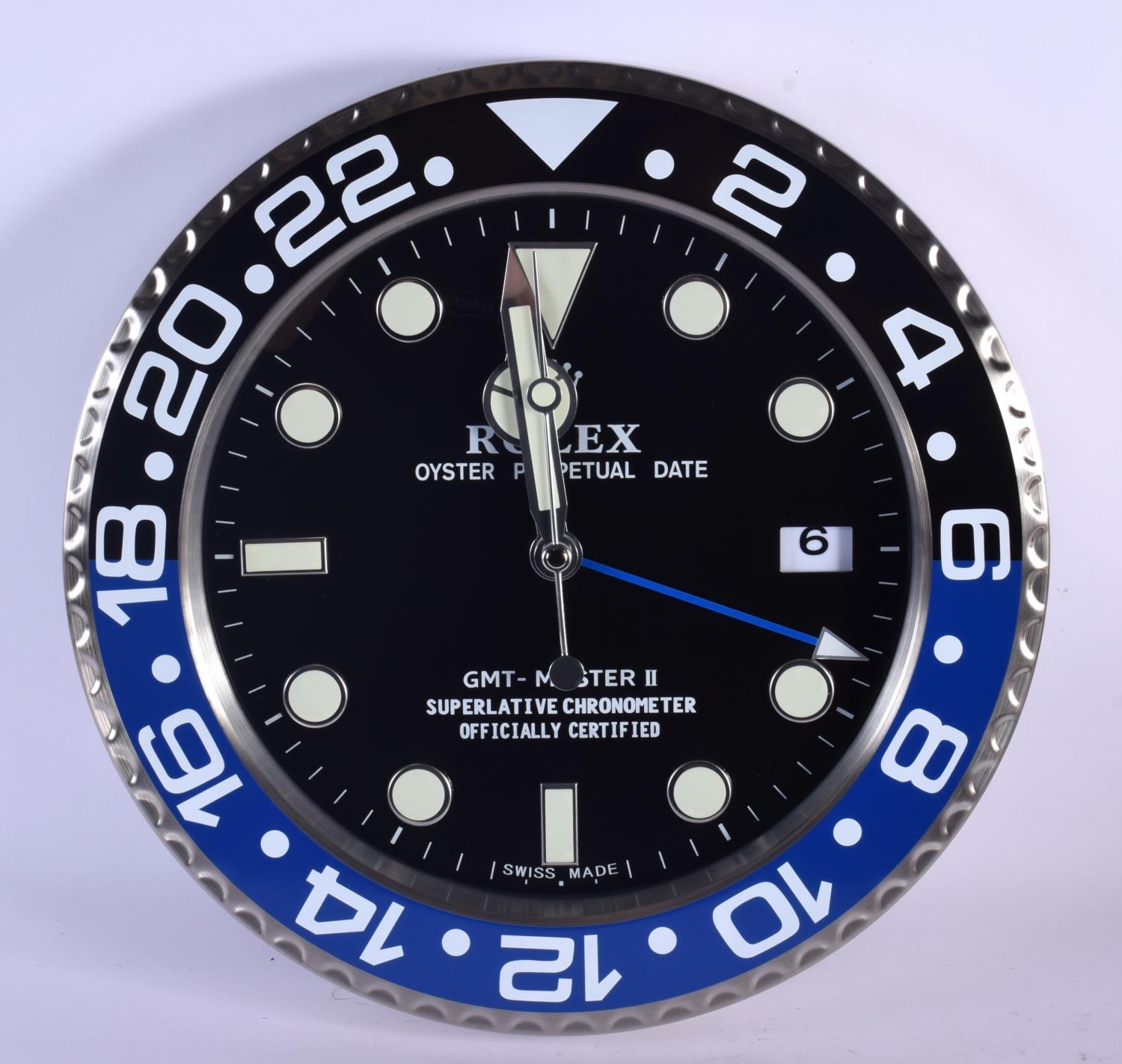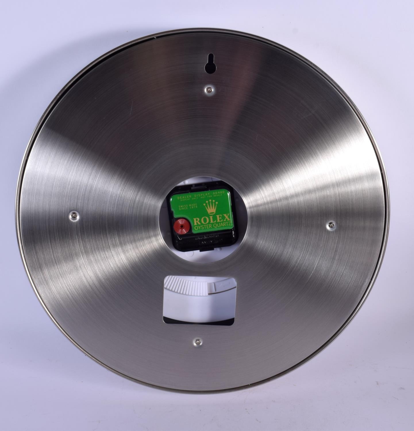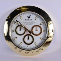 A ROLEX SHOP DISPLAY ADVERTISING WALL CLOCK. 33 cm diameter.