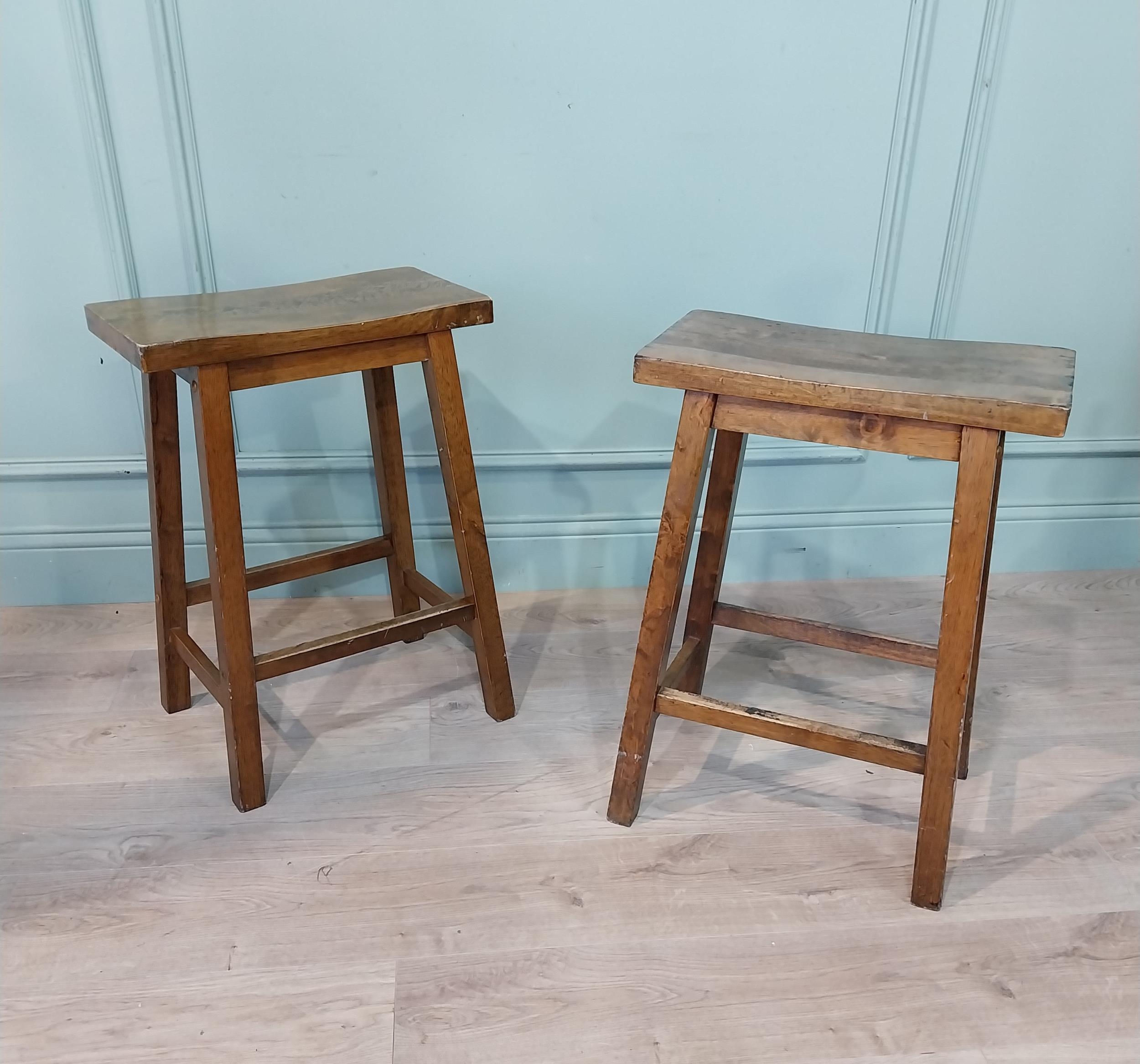 Pair of 1950's pine lamp stools on square splayed legs. {61 cm H x 45 cm W x 32 cm D}.