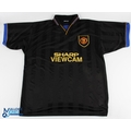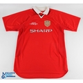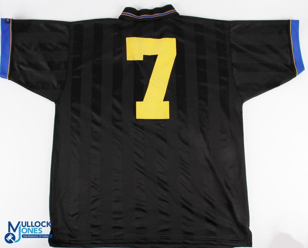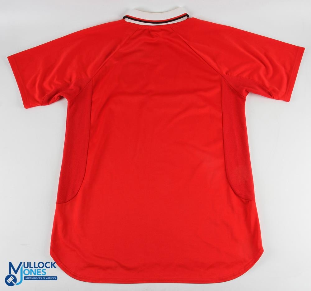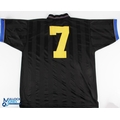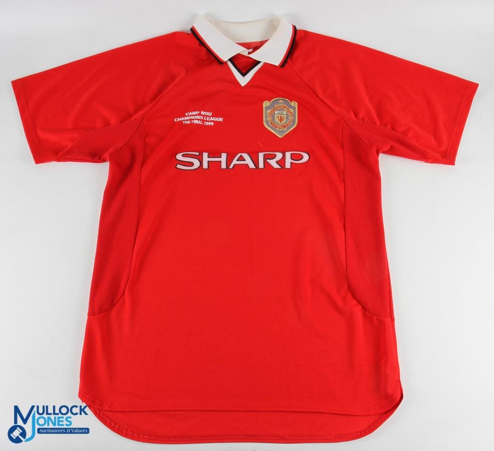 2 Score Draw Re-Issue Manchester United Replica Football Shirts, an away shirt 1993/95 black short sleeve No. 7 to back- the score draw label has been cut out size XXL. Plus a 1999 Champions League Camp Non score draw re issues Manchester United shirt short sleeve XL, also has its label removed