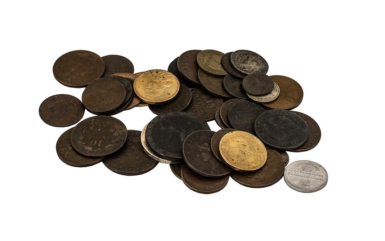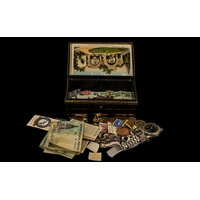 Box of Mixed Coins, Tokens, Georgian Pennies, Coloured Coins - Misc.