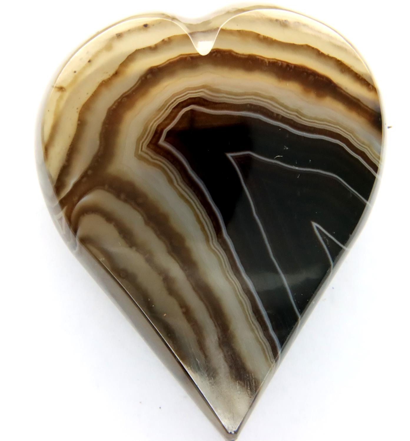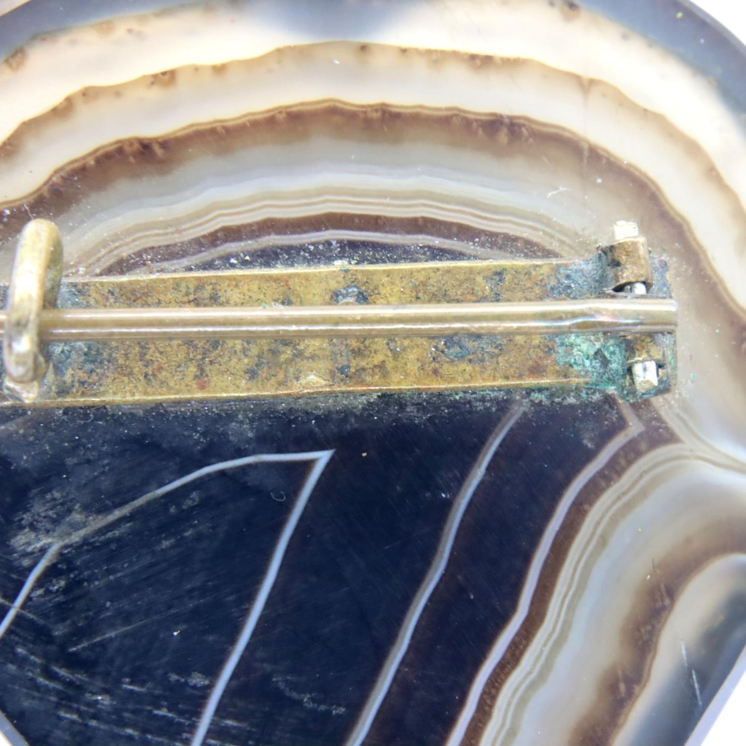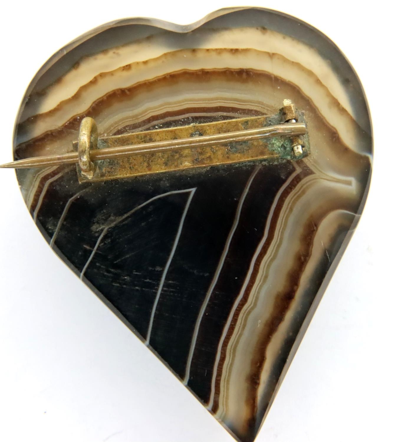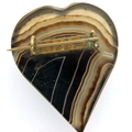 Heart shaped banded agate brooch, H: 45 mm. P&P Group 1 (£14+VAT for the first lot and £1+VAT for subsequent lots)